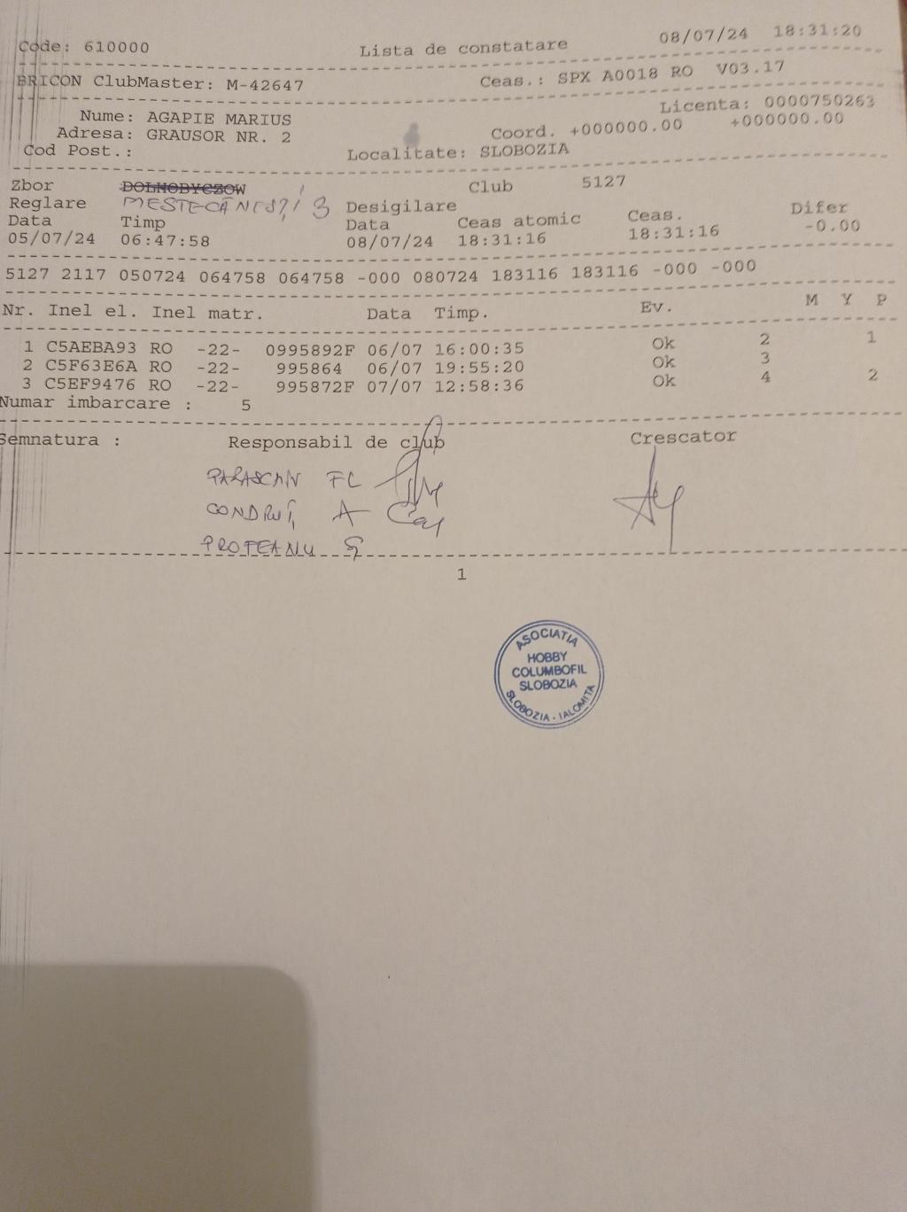 SIGILARE: [Sigilare CT23FCC la Constanta 2] RECLEMARE: [Imbarcare Til Robert 1 porumbel 232753 RO22] |