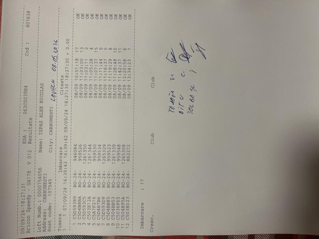 | 262 | Iostin Razvan | PH9384 | TOP | Valeni |