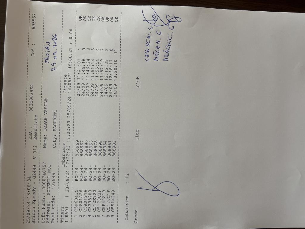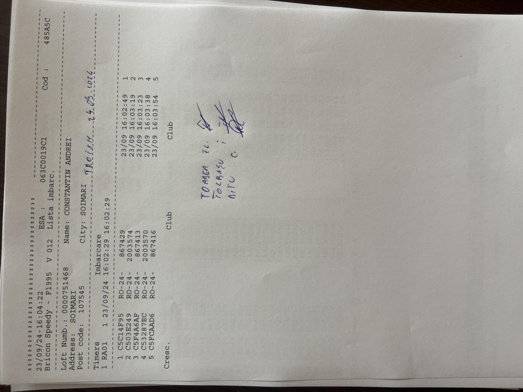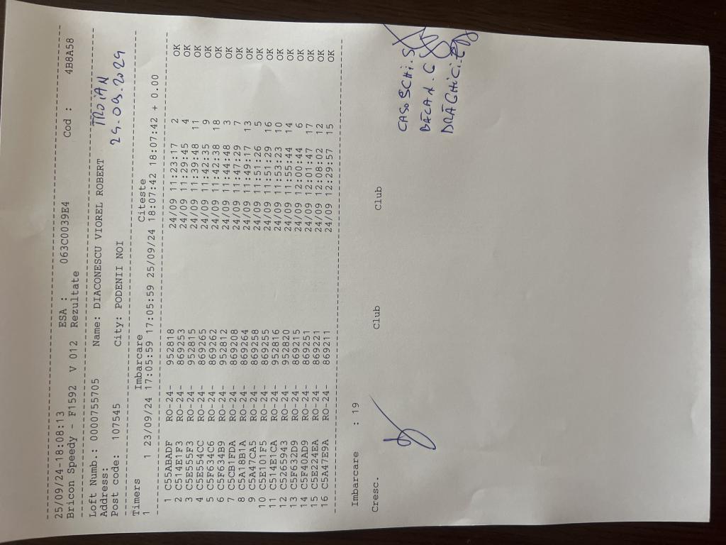 | 102 | Sandu Pigeons Team | PH10611 | BRI | Plopeni |