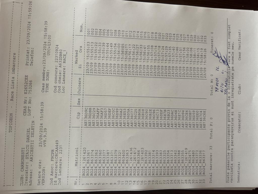 | 33 | Staicu Daniel | PH124161 | TOP | Carbunesti | [IMB P0] |