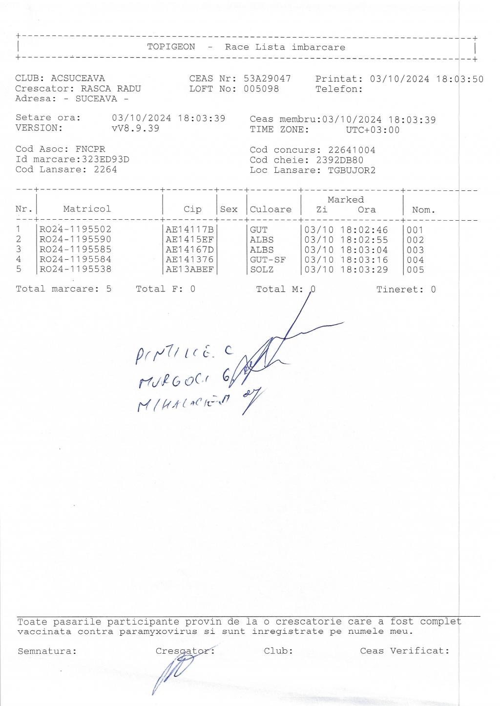 | 14 | Murgoci Gabriel | SV1652 | BEN | Burdujeni | [IMB P0] | [DES P0] |