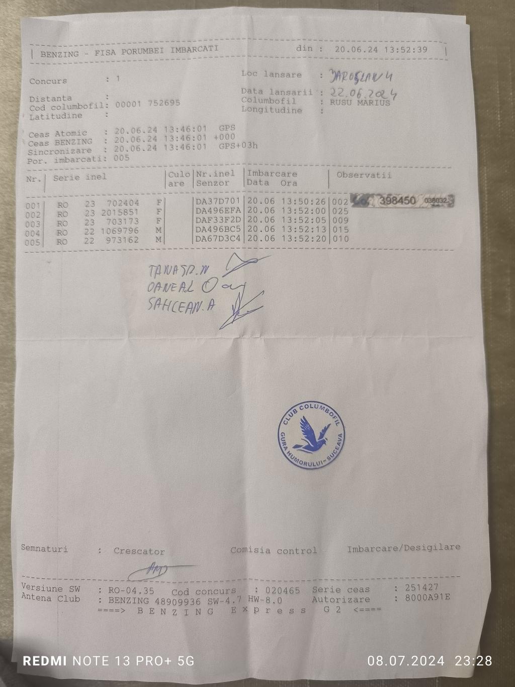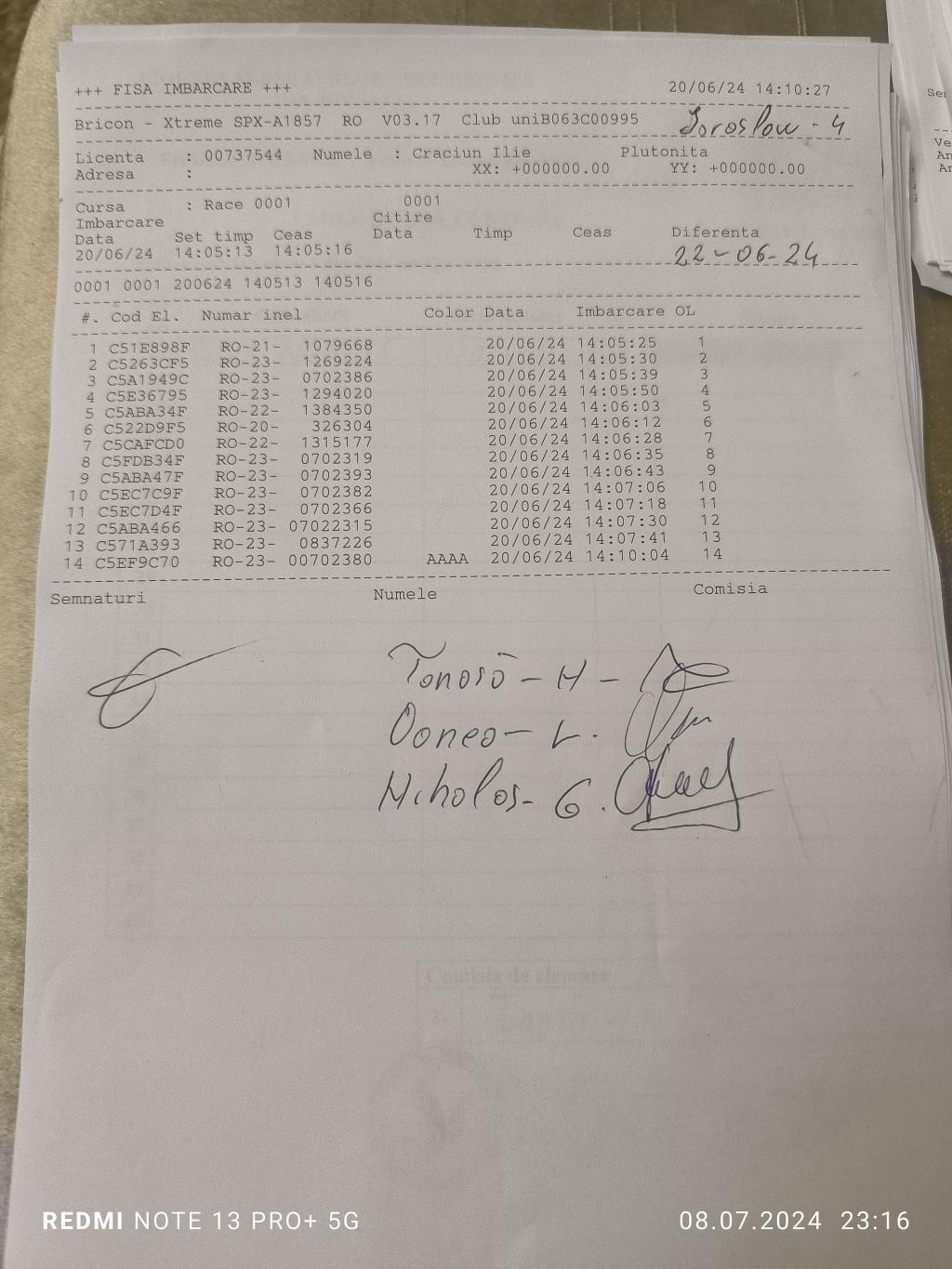 | 205 | Ciobanu Costel | SV1883 | TOP | Phoenix Bucovina |