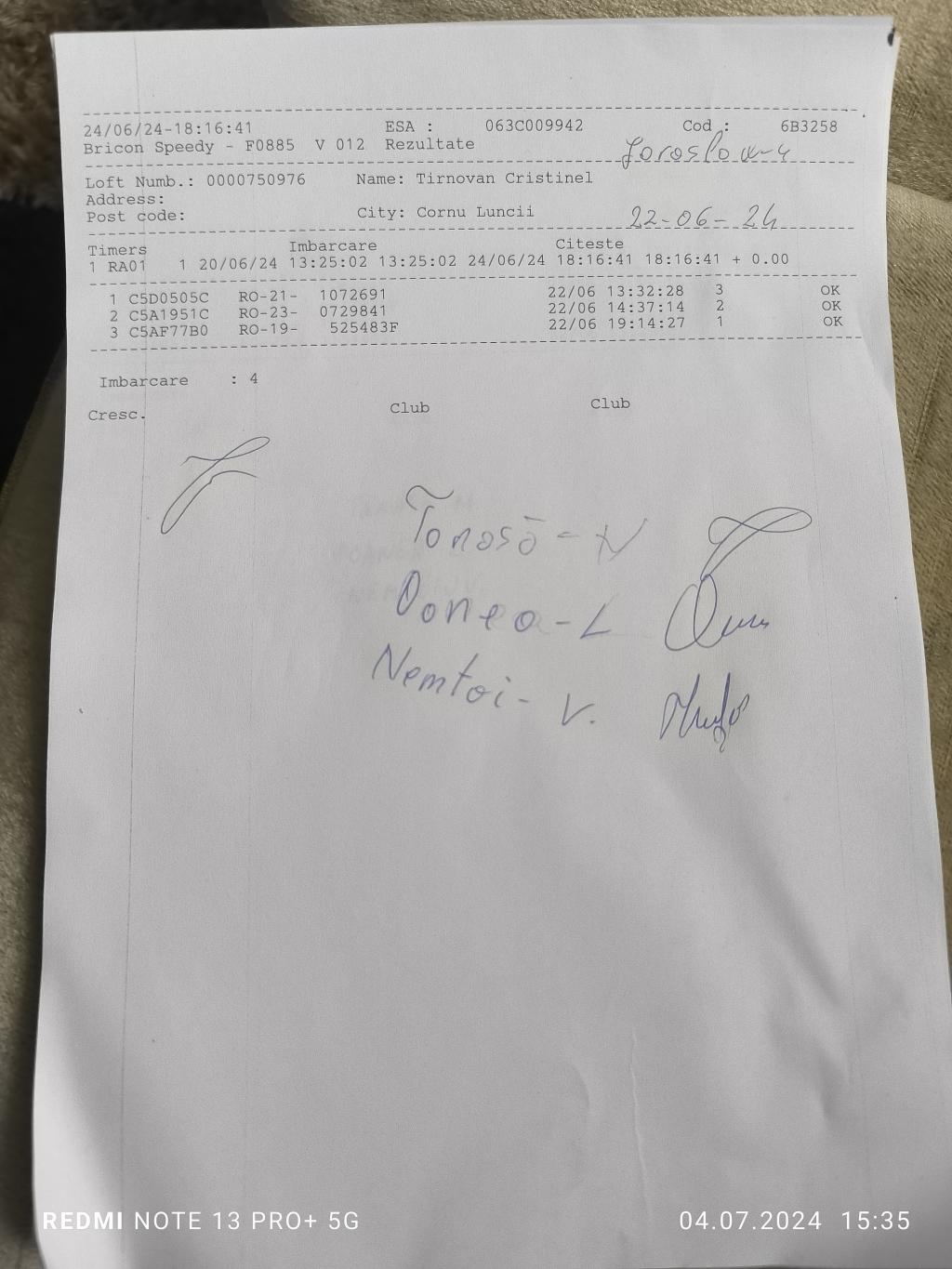 | 244 | Hirlet Cezar | SV565 | TOP | Radauti |