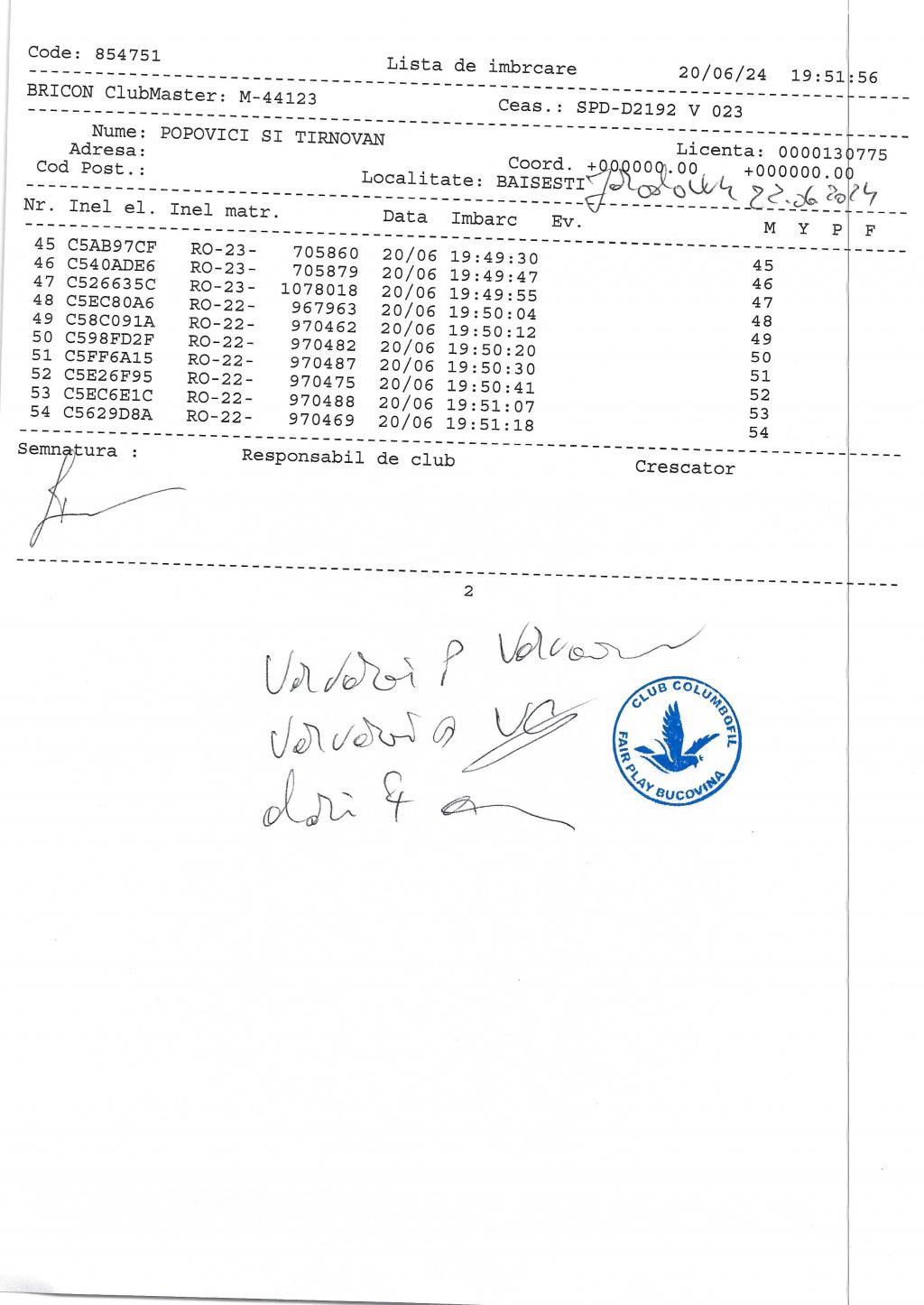 | 70 | Morosan Simi Si Costica | SV1031 | TOP | Cajvana |