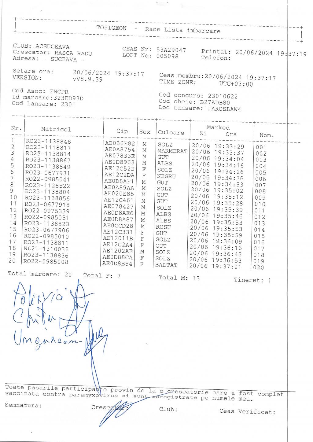 | 223 | Perijoc Marian | SV517 | TOP | Phoenix Bucovina |