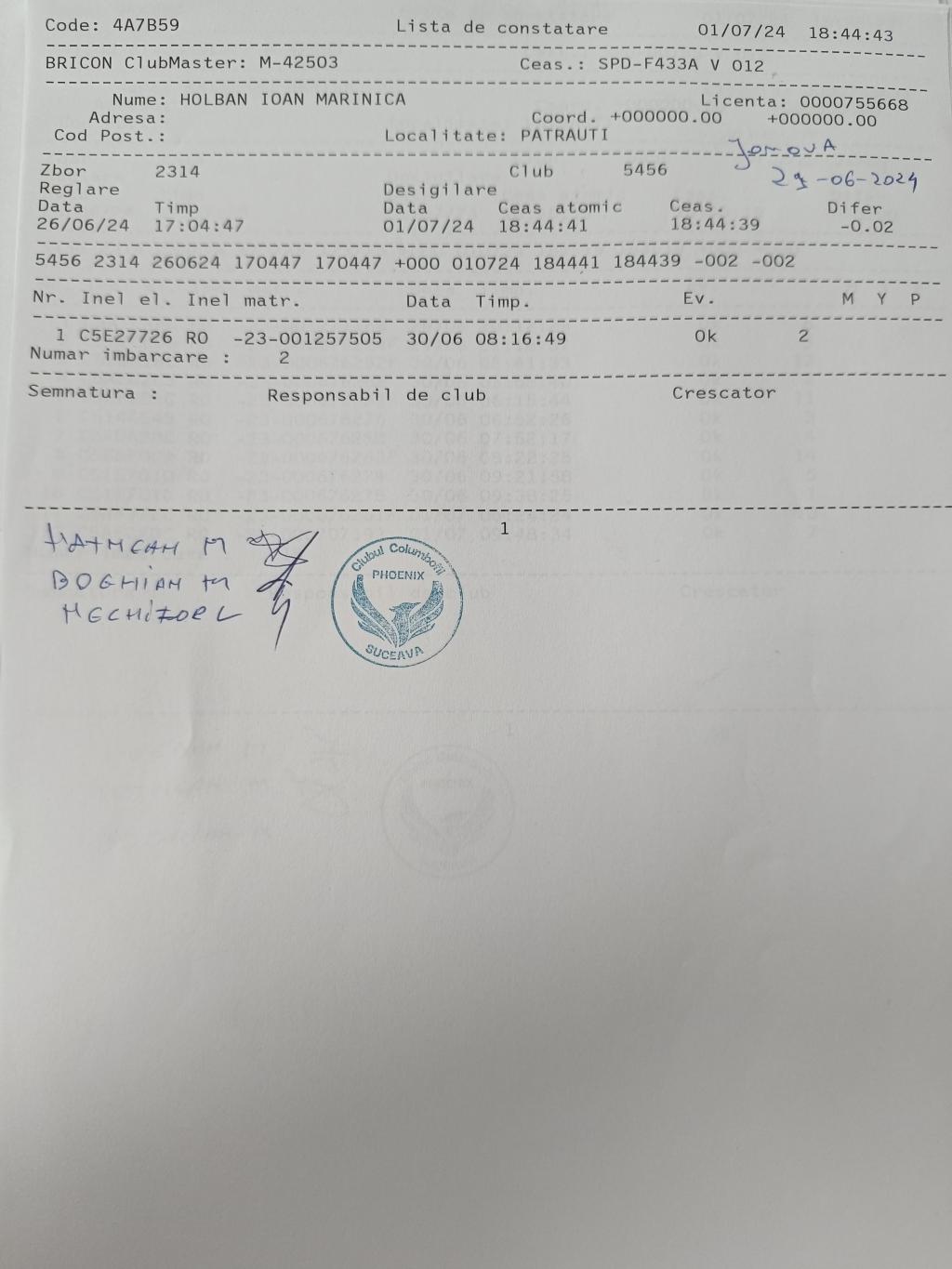 | 623 | Nicolaescu Ioan | SV1509 | BEN | Radauti | [IMB P0] | [DES P0] |