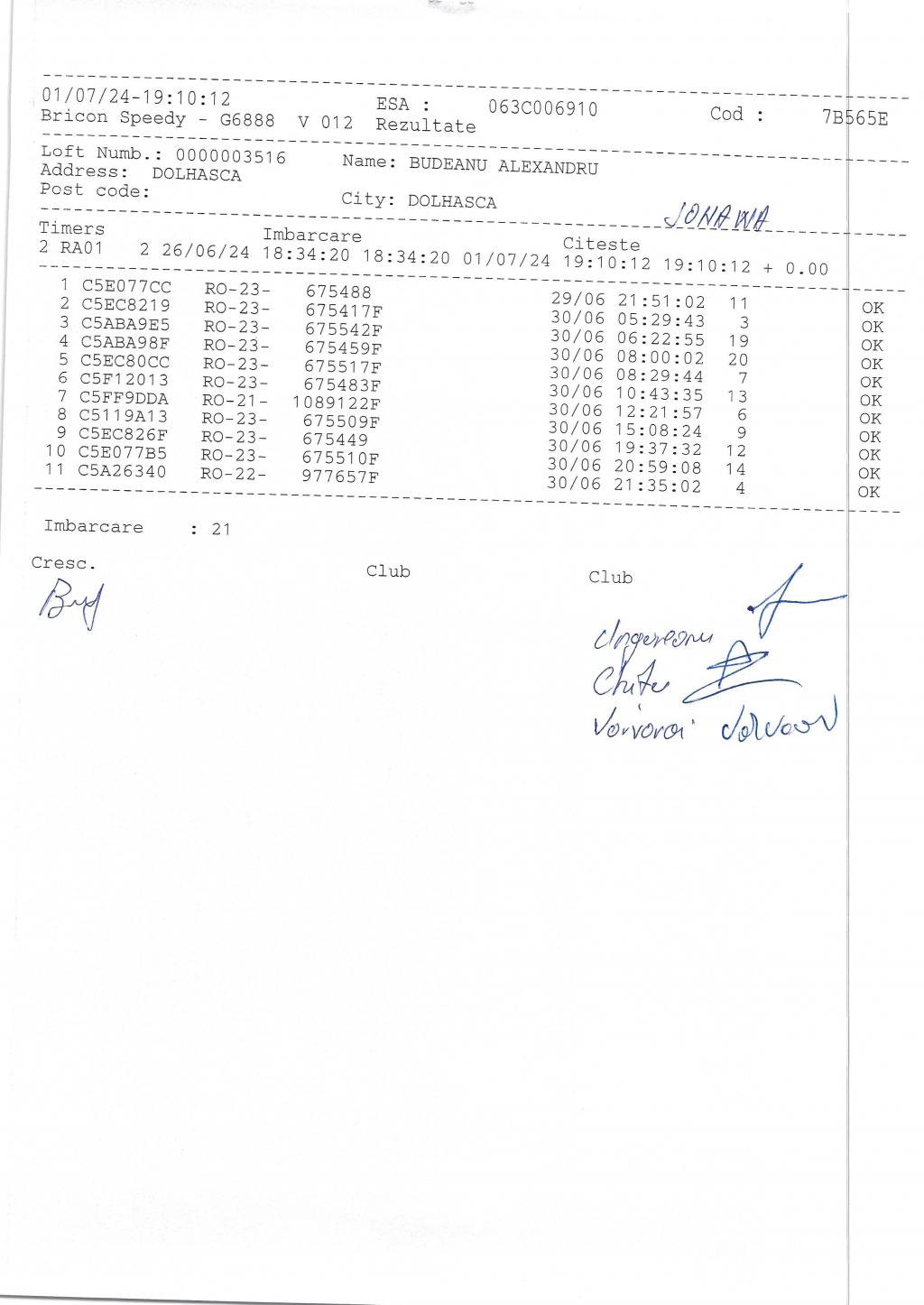 | 604 | Grigoras Romeo | SV1416 | TOP | Radauti |
