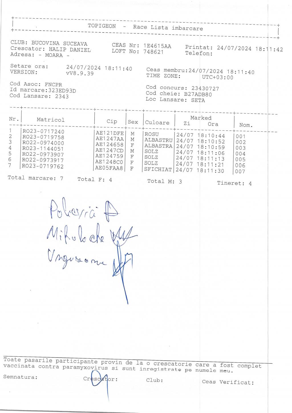 | 771 | Tess Top Pigeons | VS17 | BEN | Vaslui |