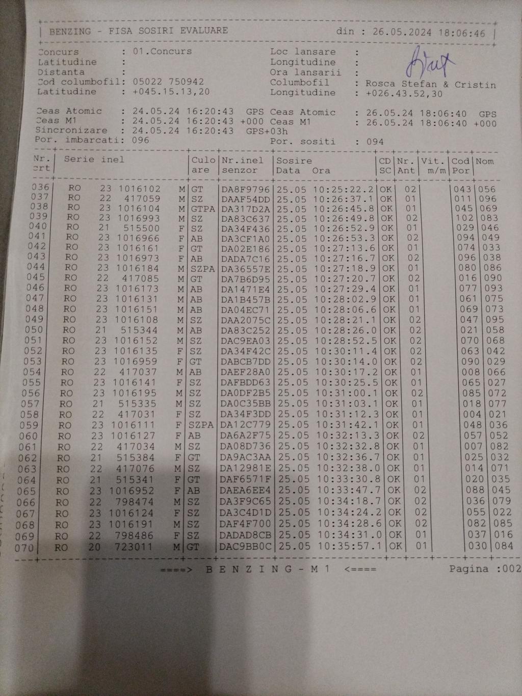 | 94 | Nita Cosmin | BZ10086 | BEN | Maracineni | [IMB P0] | [DES P0] |