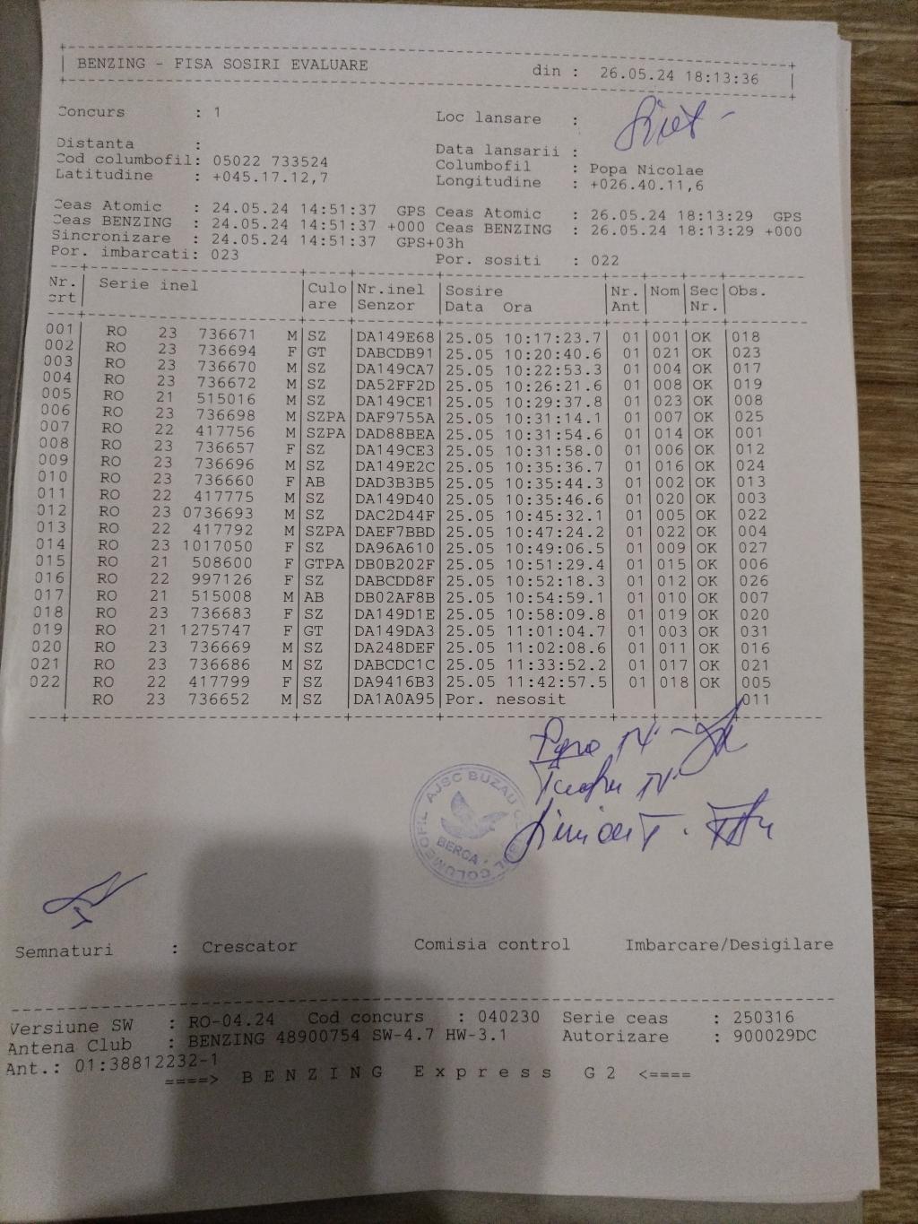 | 101 | Sula Adrian | BZ9938 | BRI | Maracineni | [IMB P0] | [DES P0] |