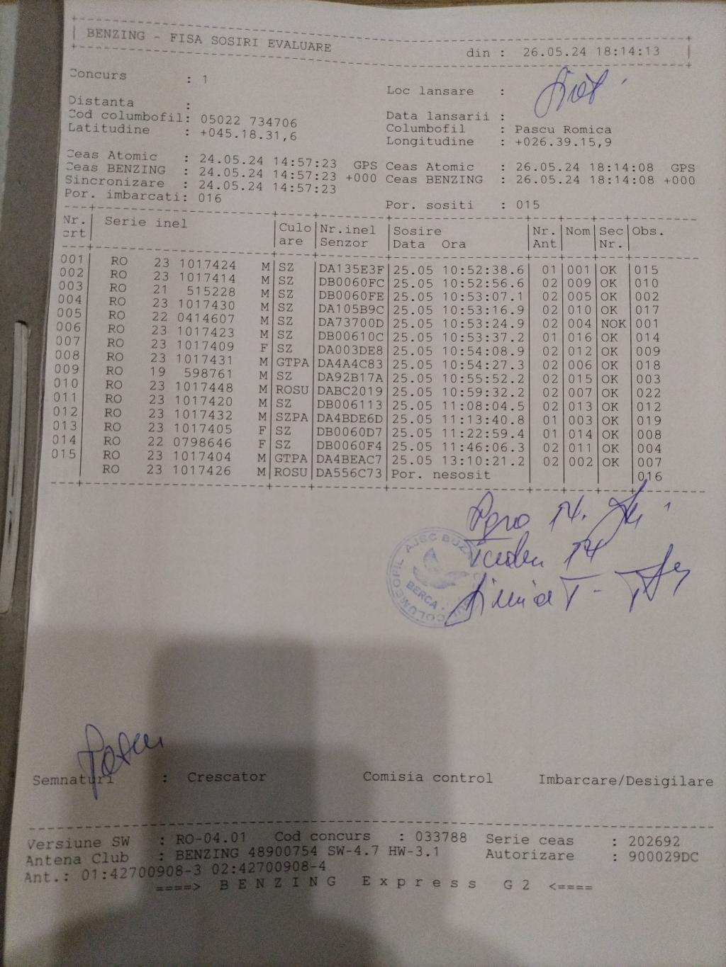 | 15 | Sontica Stefan Cristian | BZ10106 | BEN | Berca | [IMB P0] | [DES P0] |