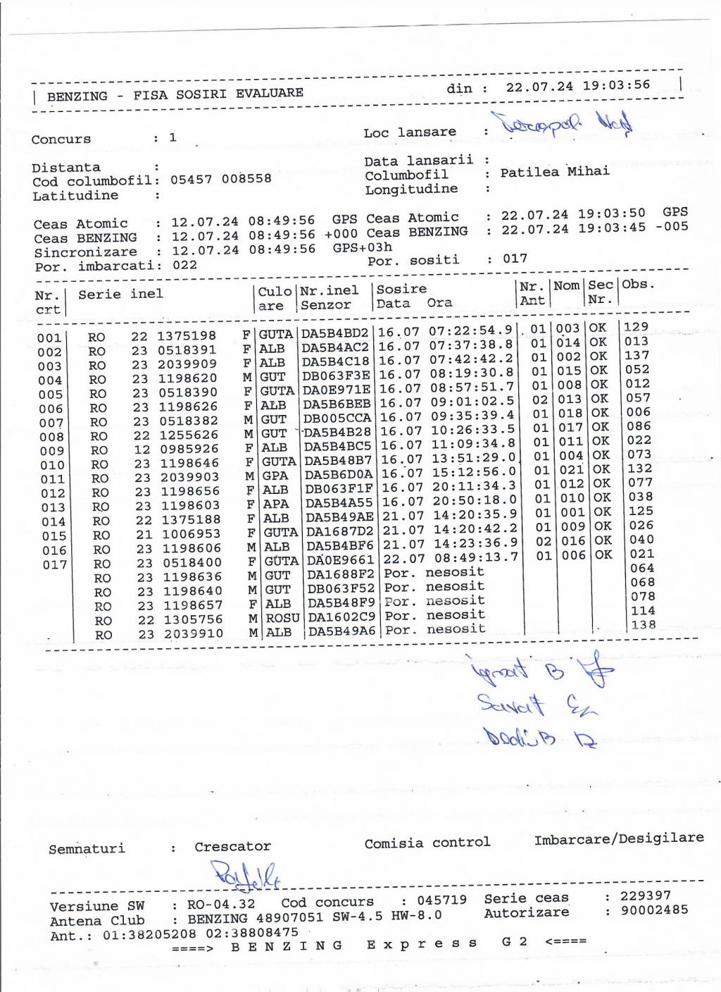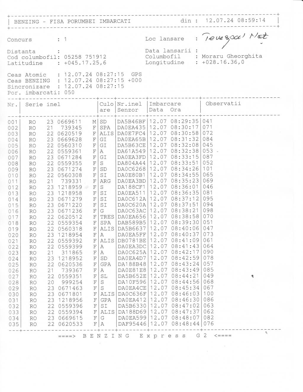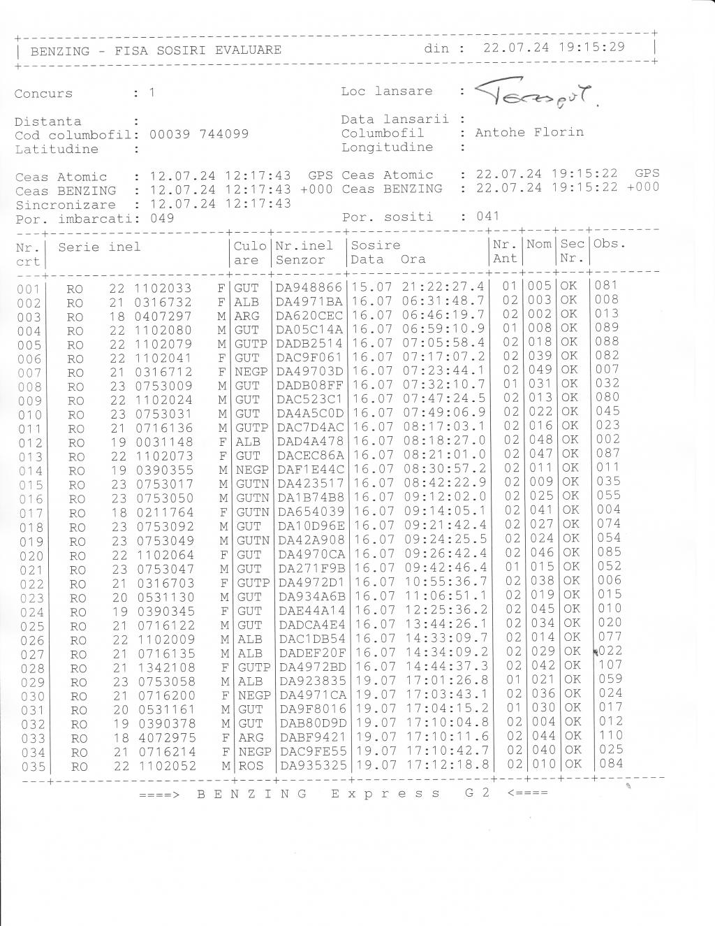 72 | Mocanu Petrica | CT1038 | BEN | Constanta 2 | [IMB P0] | |