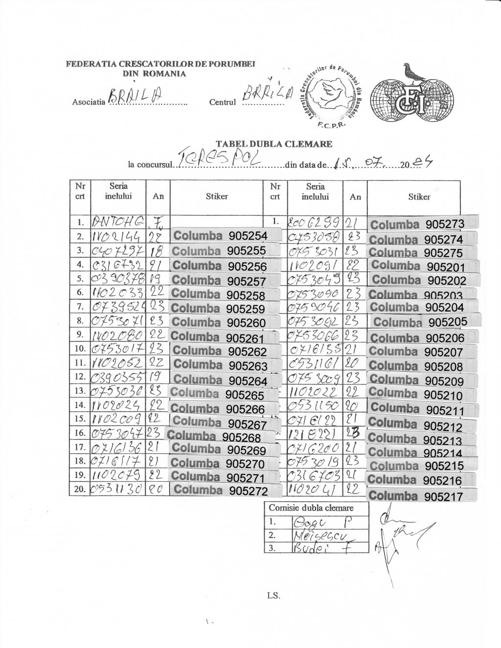 31 | Mario Pigeons | BR408 | BEN | Braila | [IMB P0] | [DES P0] [DES P1] |