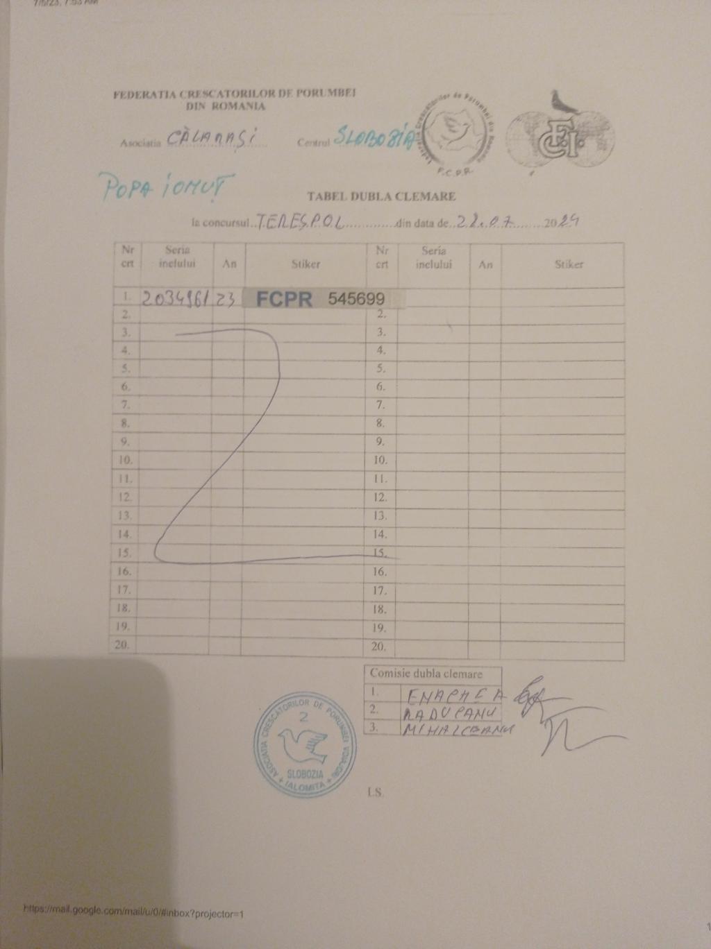 | 337 | Ciocianu Gabriel | IL397 | BRI | Slobozia | [IMB P0] | [DES P0] |