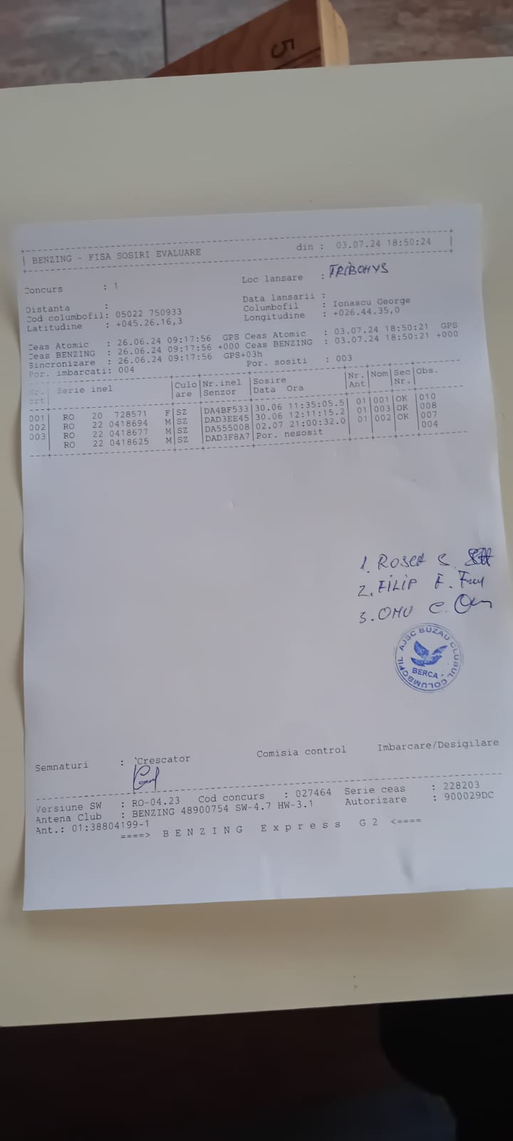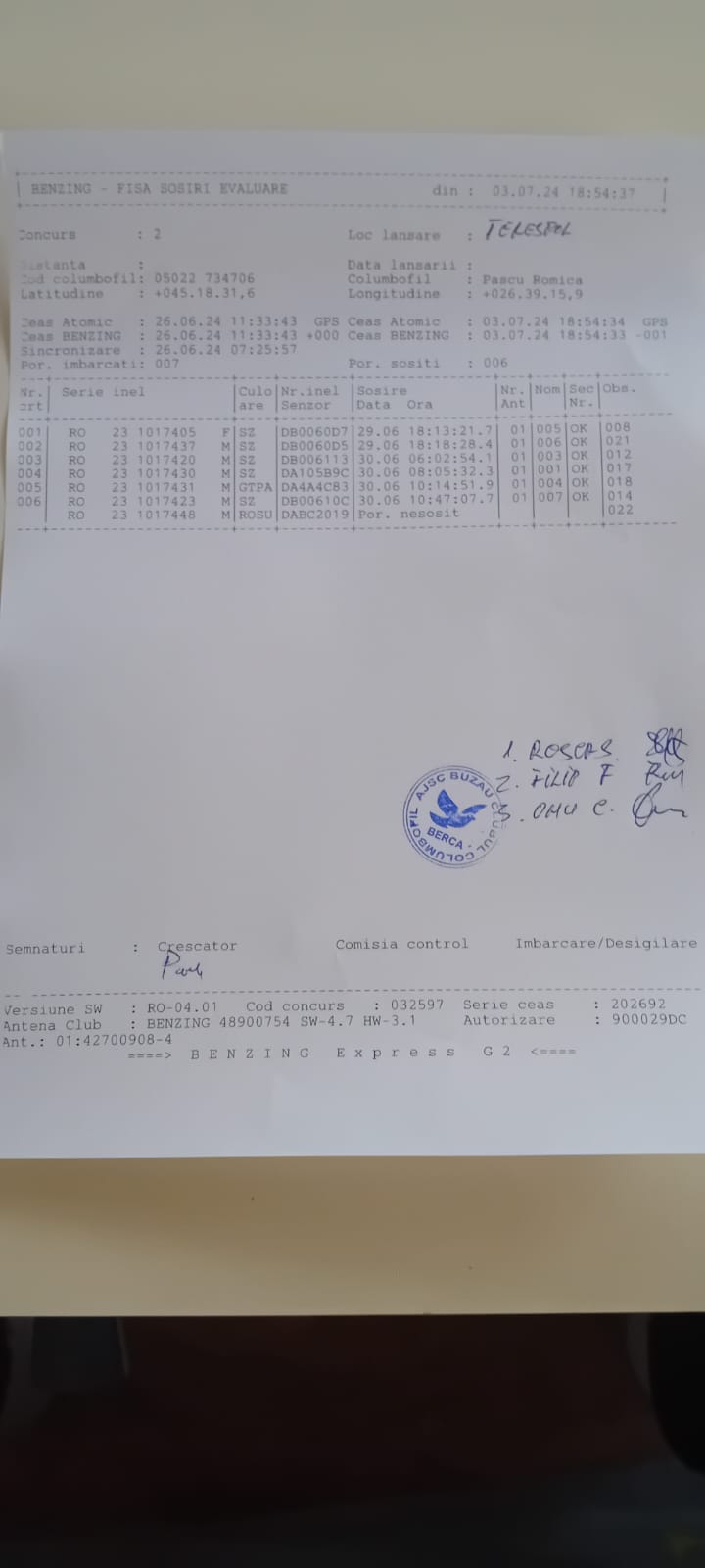 | 340 | Simion Dan+nectarie | BZ9769 | TOP | Maracineni |