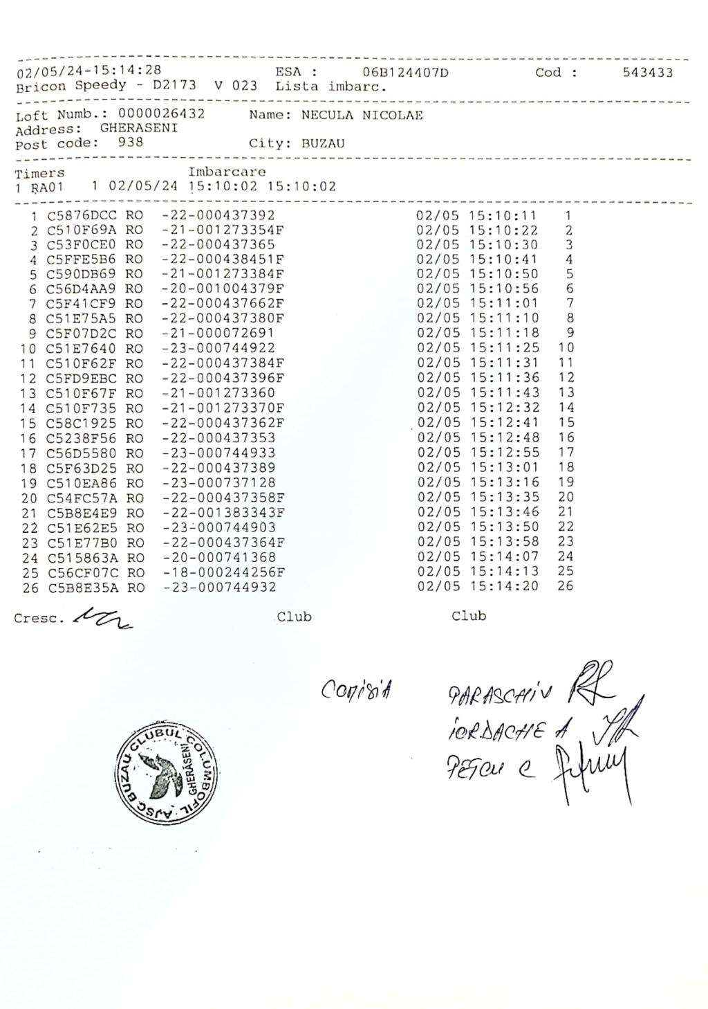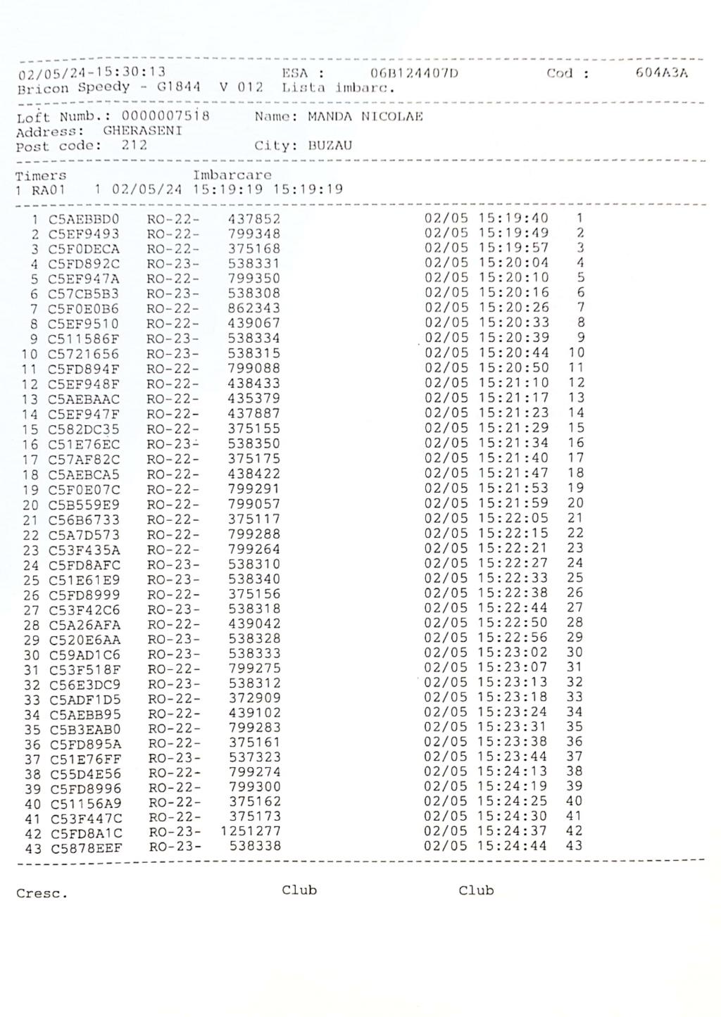 | 40 | Necula Nicolae | BZ9385 | BRI | Gheraseni | [IMB P0] | |