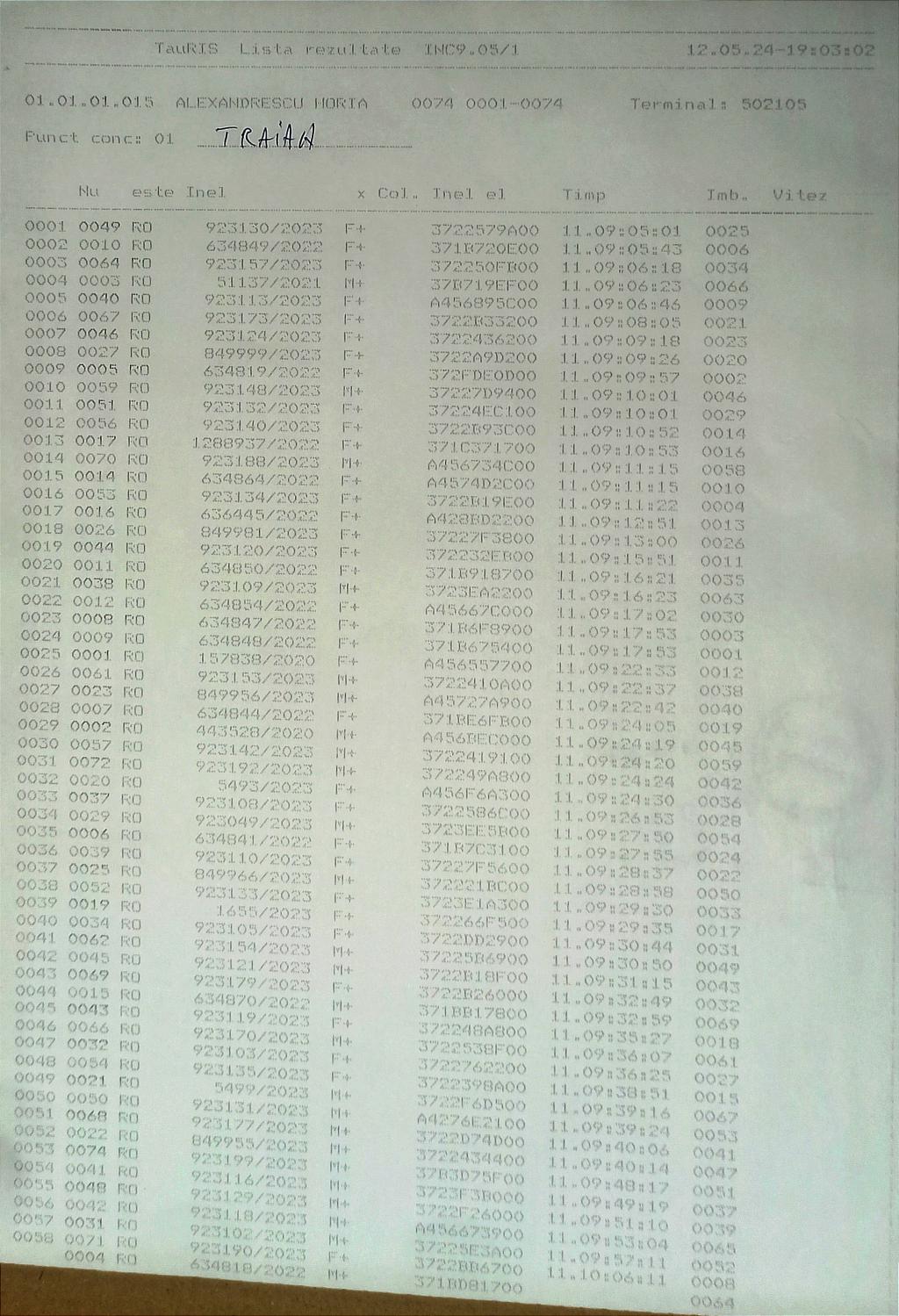 | 173 | Ghinoiu Raul | PH124270 | TOP | Fieni |
