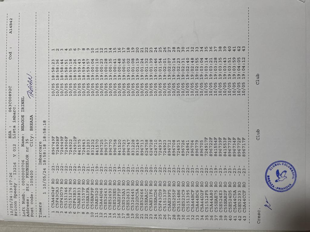 | 41 | Cioceanu Gheorghe | PH10300 | BRI | Breaza | [IMB P0] | [DES P0] |