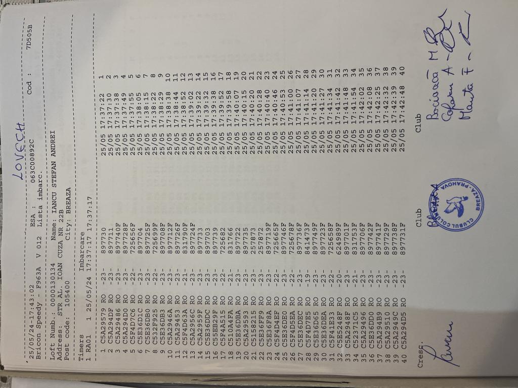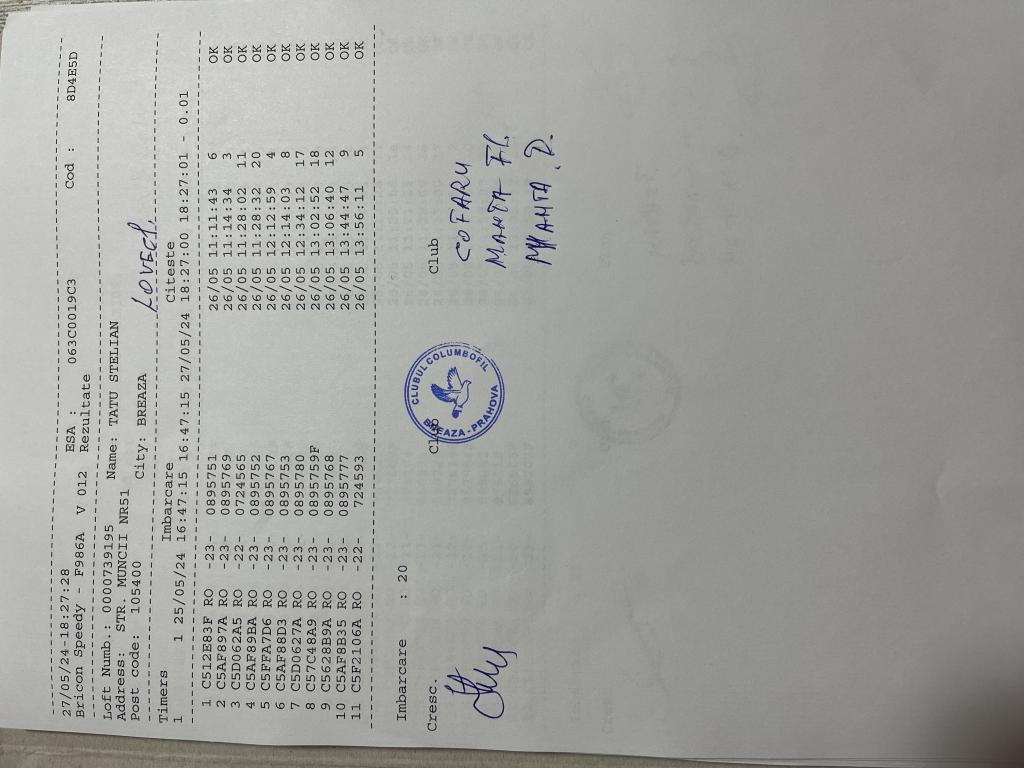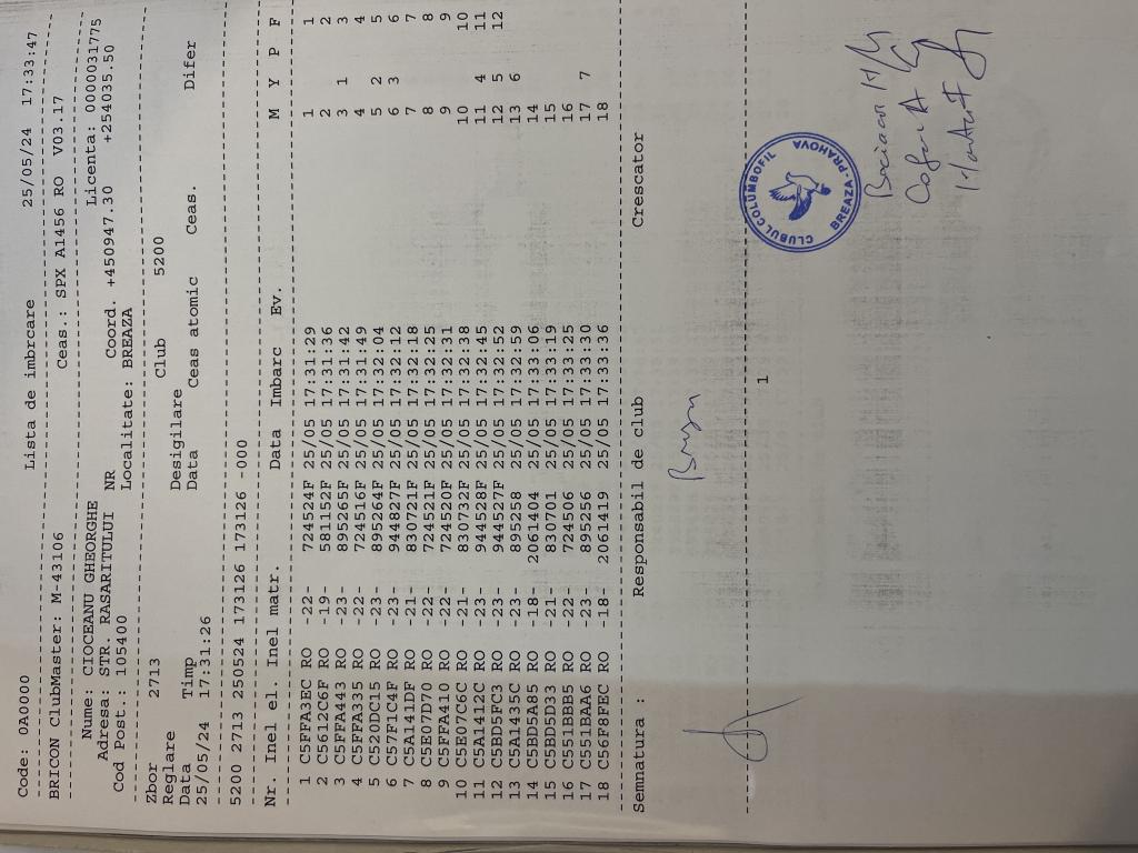 | 39 | Cioceanu Gheorghe | PH10300 | BRI | Breaza | [IMB P0] | |
