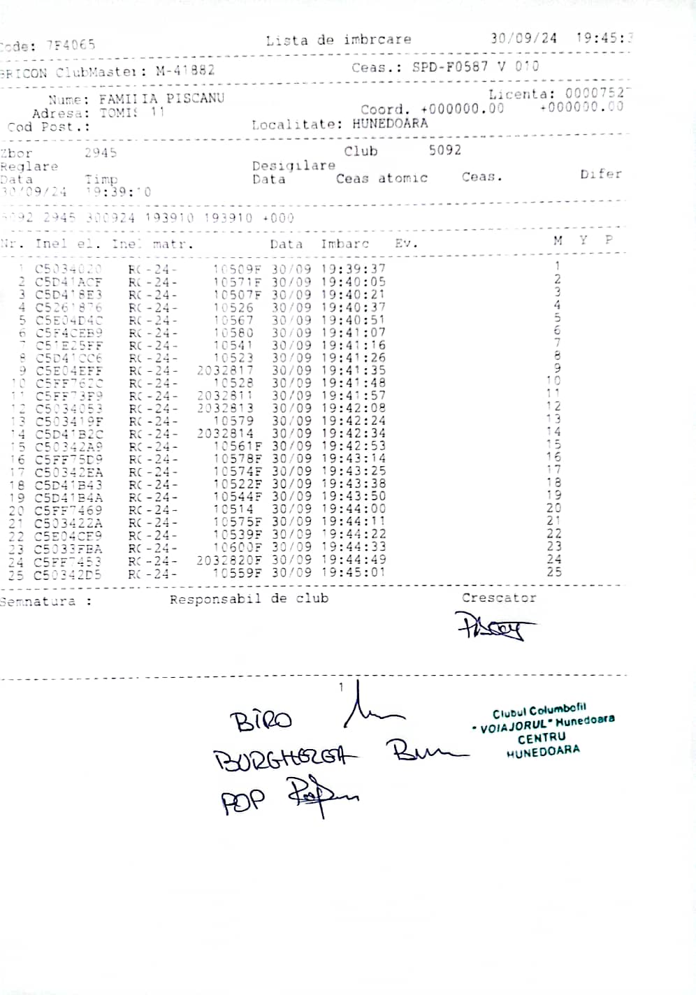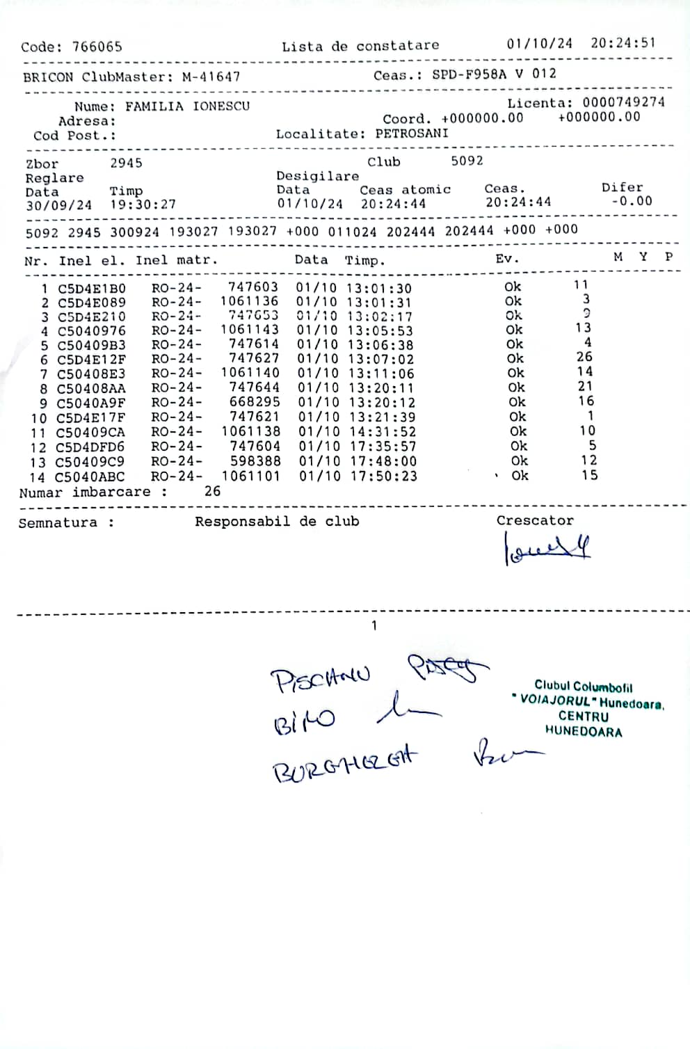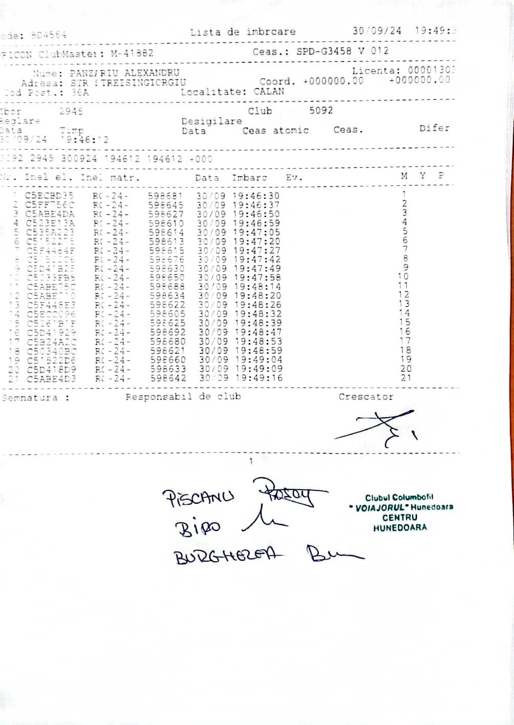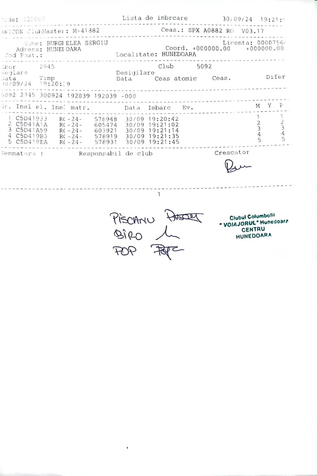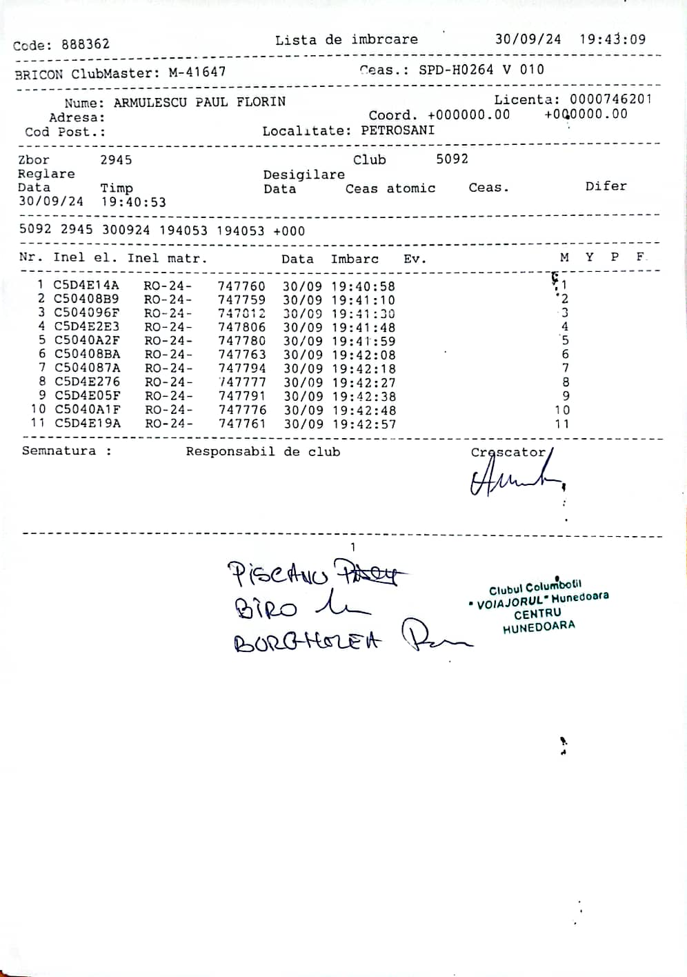 | 1 | Amihaesei Catalin-ioan | HD1405 | BRI | Hunedoara | [IMB P0] | |