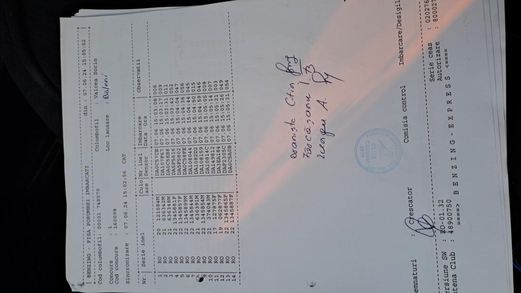 SIGILARE: [Etapa Baleni, ma?ina a venit de la centru Corabia la centru Caracal] RECLEMARE: [Etapa Baleni, reclemare porumbel Ilin Nicu?or + Nicolae] [Îmbarcare Dumitru+Draghici] SIGILARE: [Sigilare Cioroiu] [Desigilare Cioroiu] [Desigilare Caracal ] [Sigilare Corabia ] |