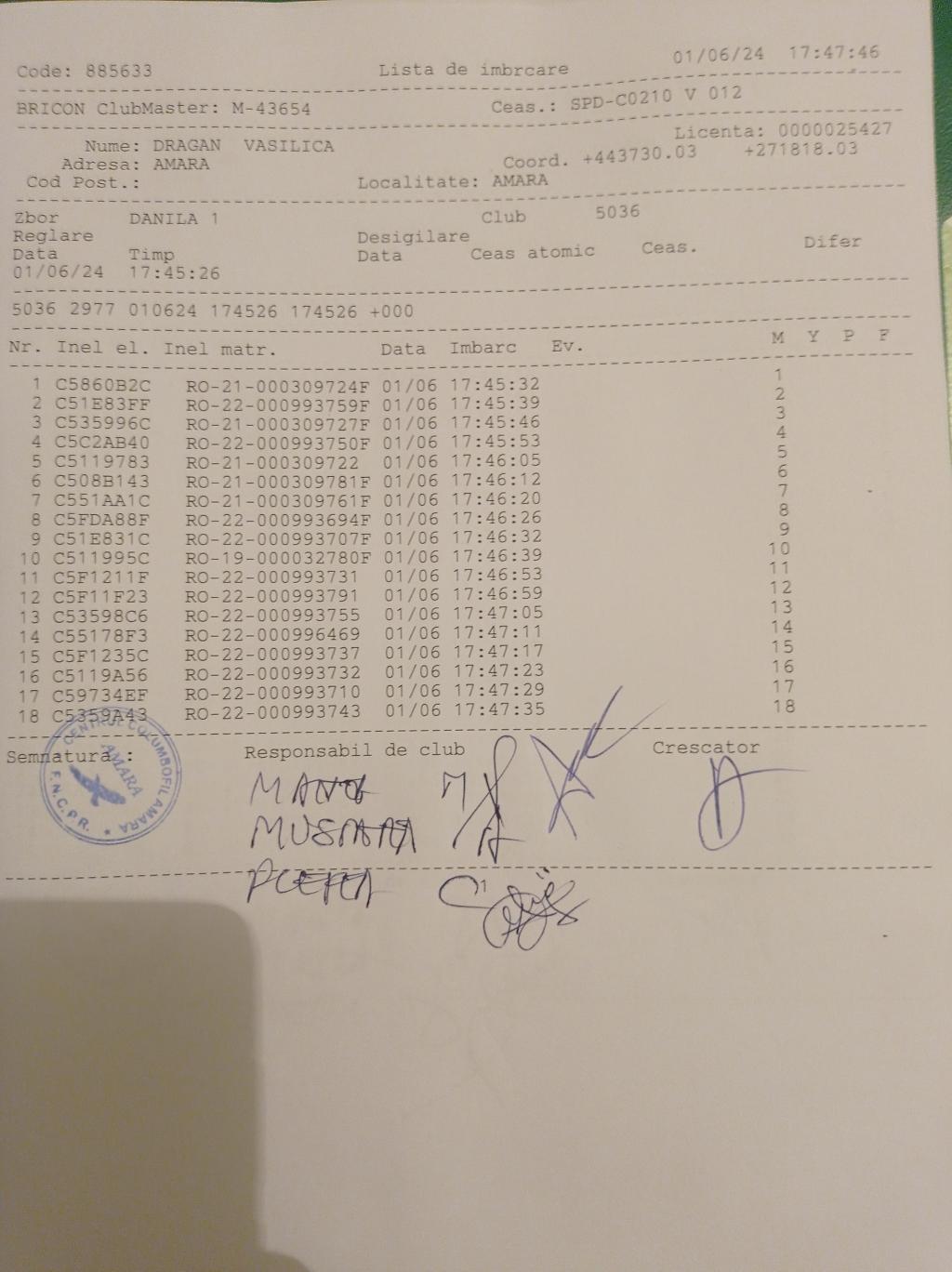 | 6 | Craciun Marius | IL426 | BRI | Amara | [IMB P0] | [DES P0] |