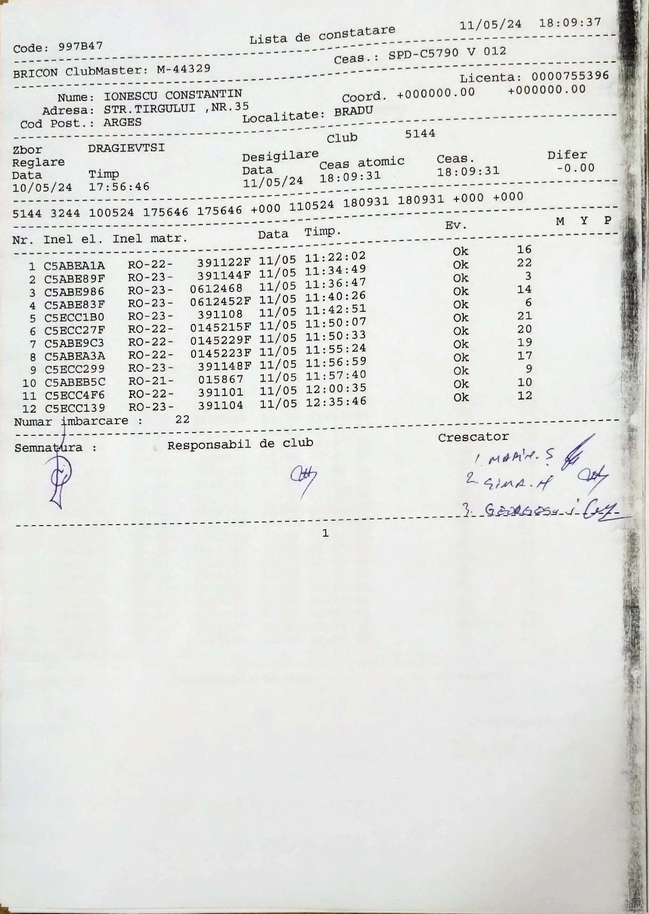 | 1. Procese verbale de imbarcare: | |||||||||||