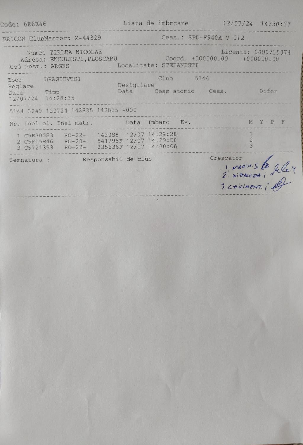| 103 | Aniel Lica Constantin | AG1492 | TOP | Voiajorul 2024 |