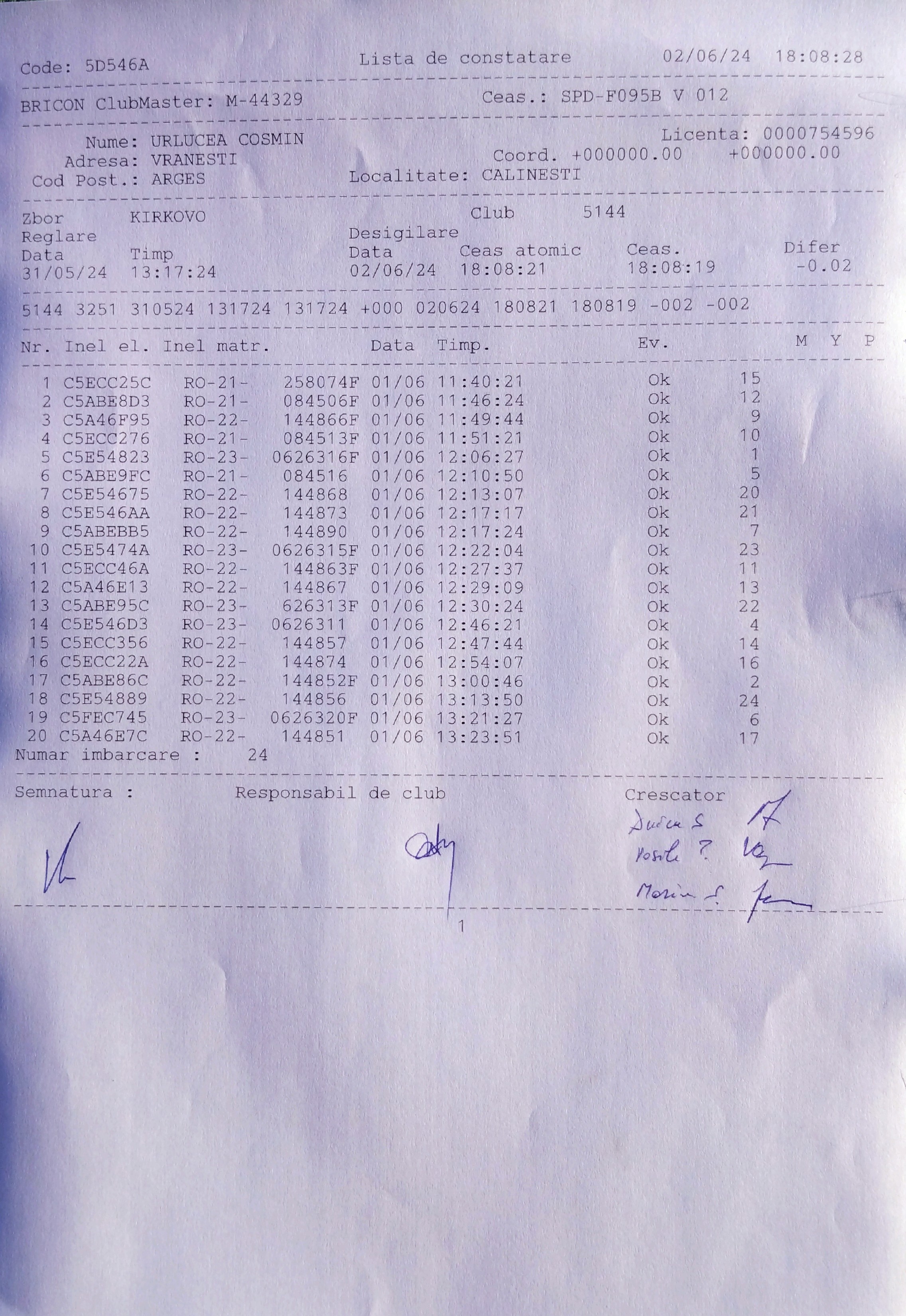 | 260 | Chita Nicusor | AG1494 | TOP | Voiajorul 2024 |