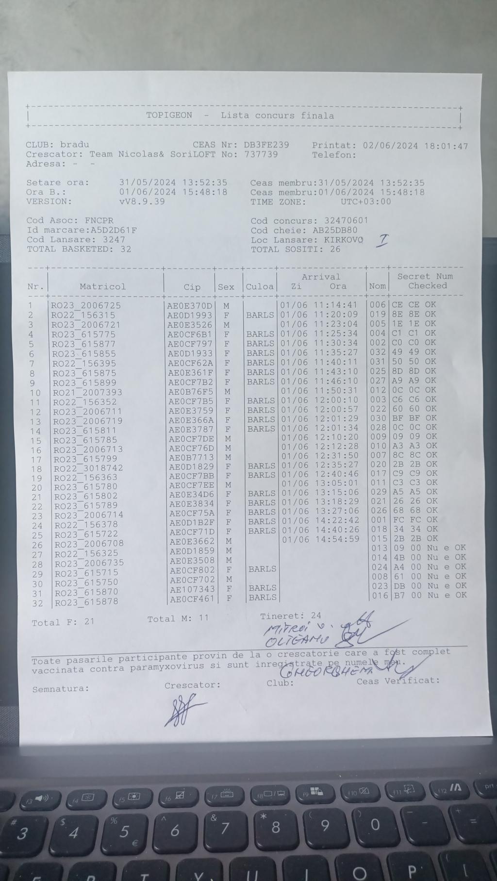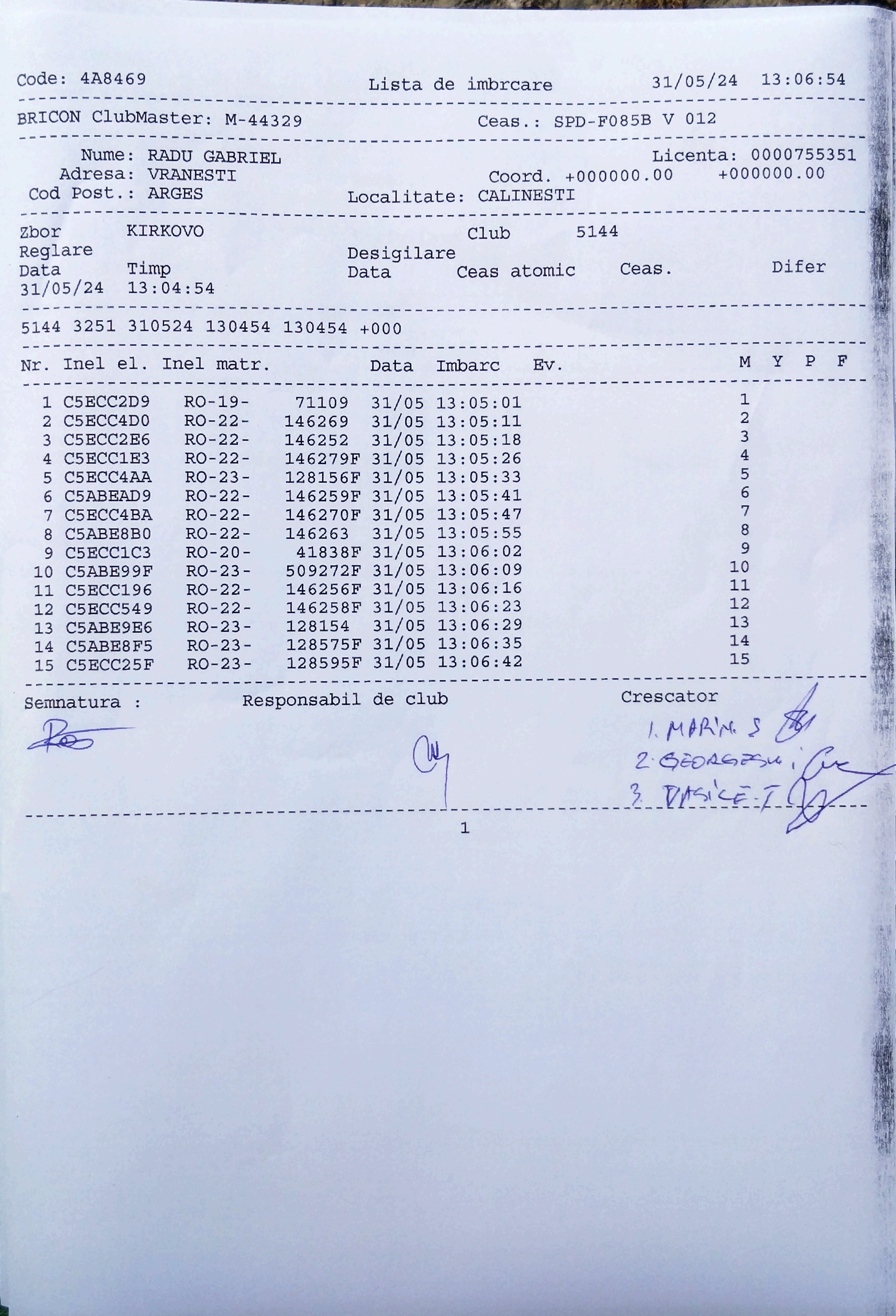 | 21 | Militaru Cristian | AG895 | TOP | Bradu |