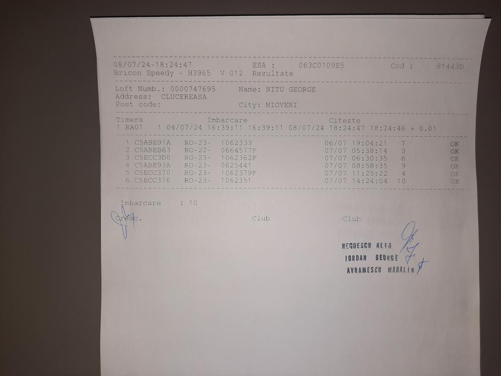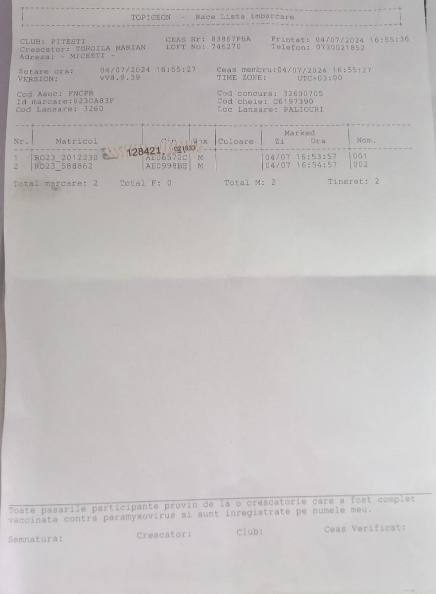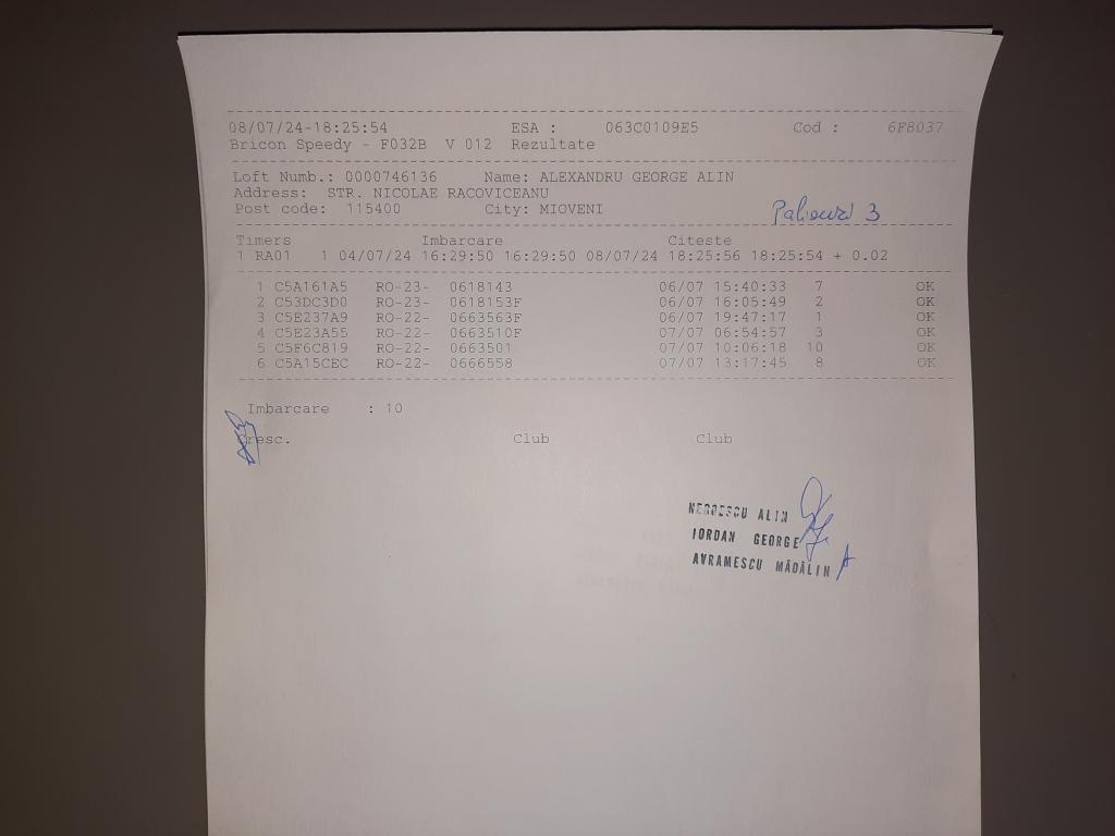 | 283 | Team Potoroaca Loft | VL1006 | BEN | Rm. Valcea |