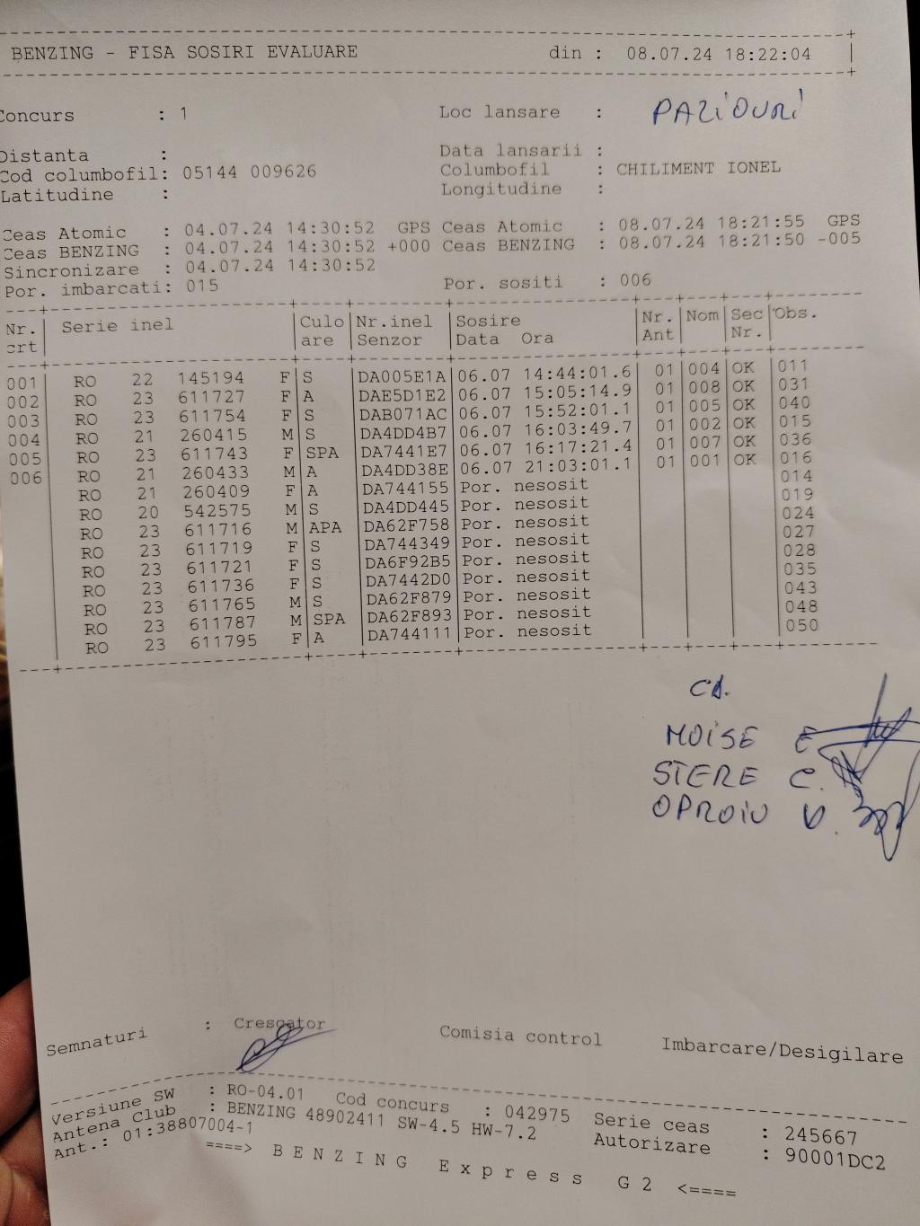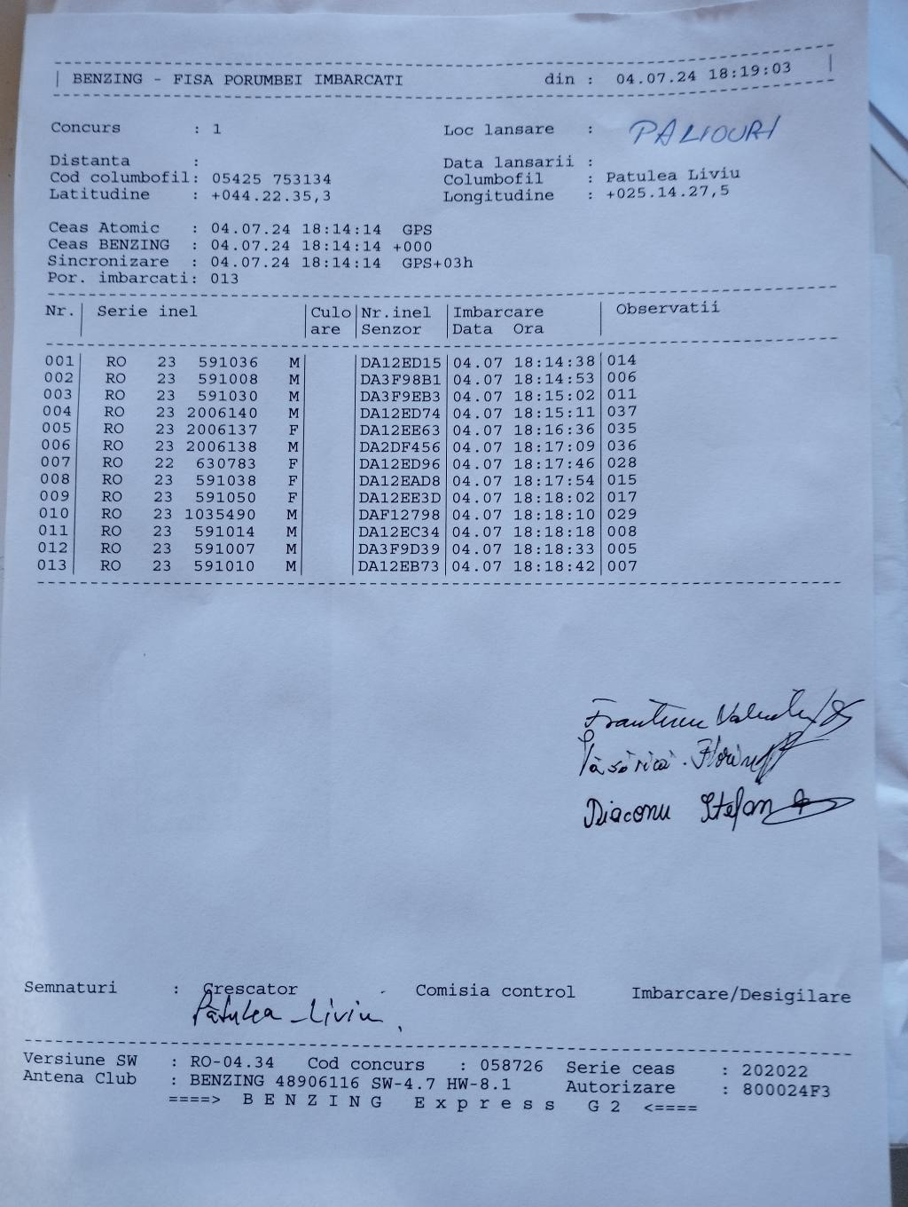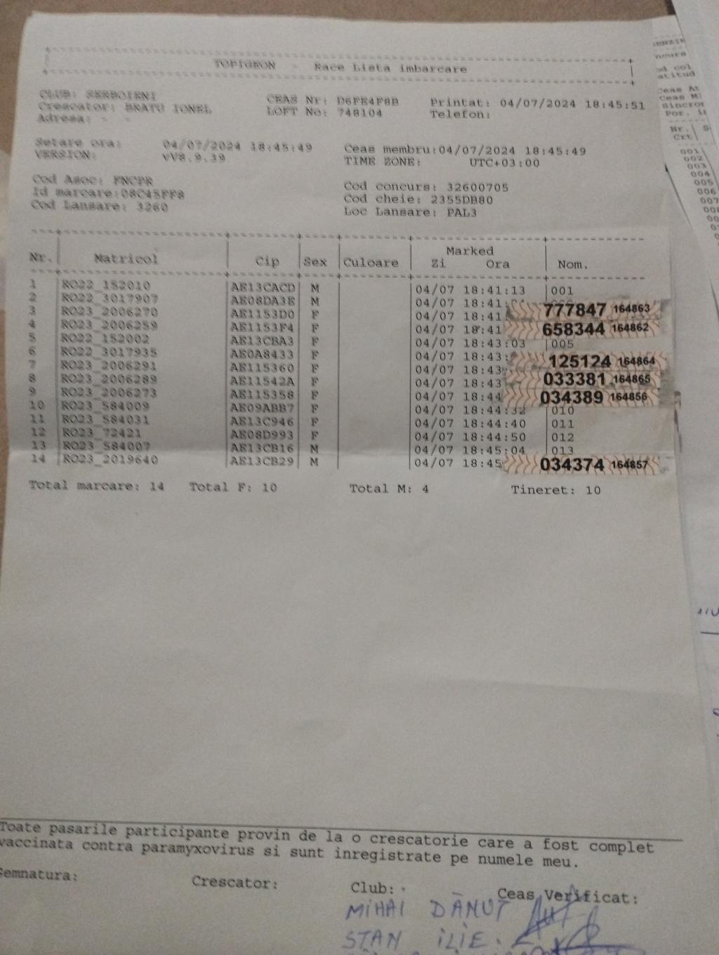 | 9 | Florea Ionut | AG1172 | TOP | Bradu |