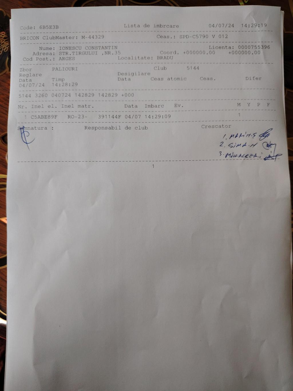 | 4 | Barbu Marius | AG1178 | TOP | Bradu |