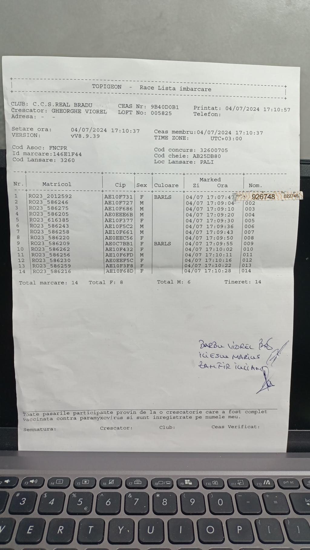 | 17 | Militaru Cristian | AG895 | TOP | Bradu |