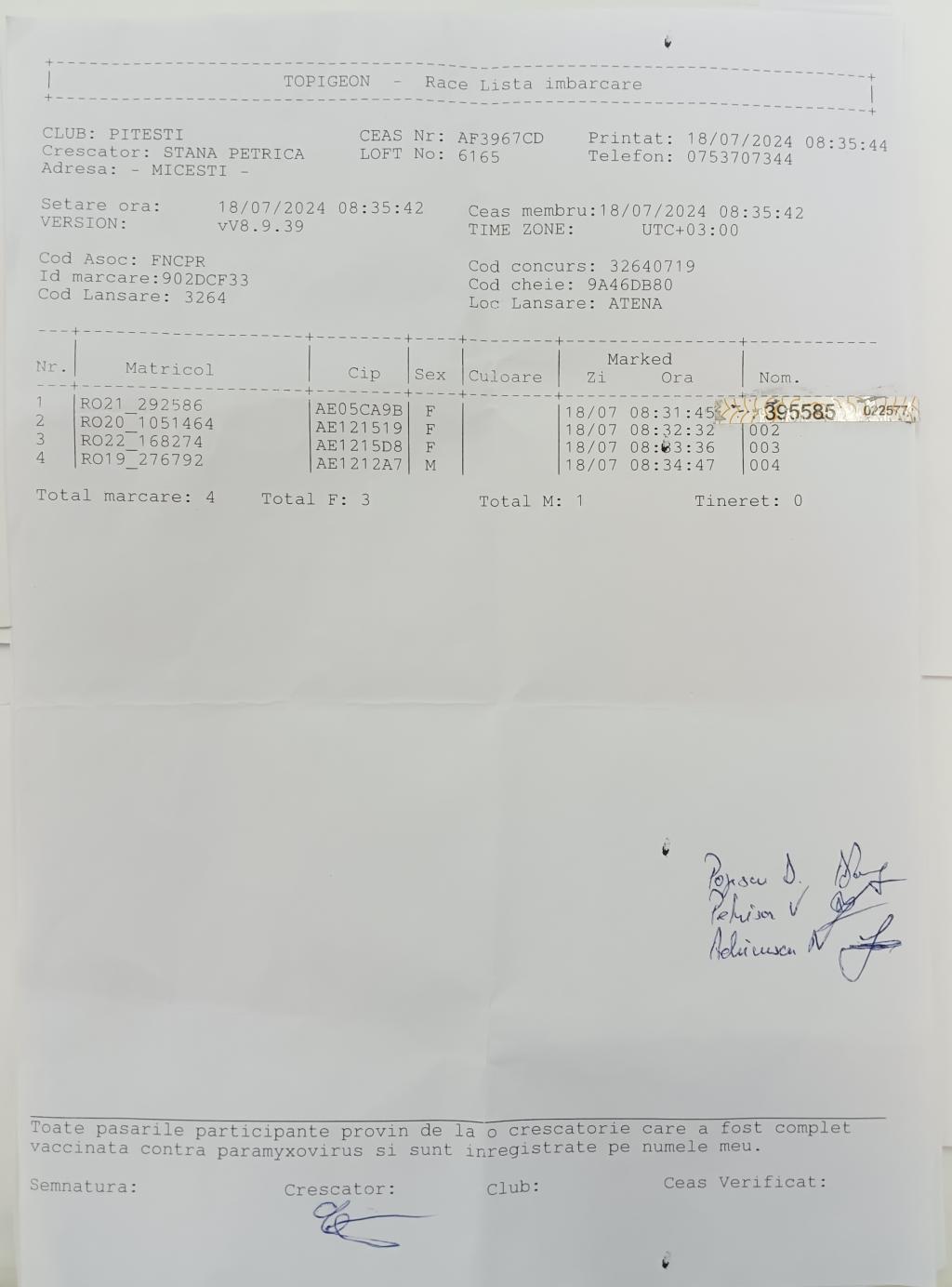 | 25 | Dumitrascu Lucian | AG1618 | TOP | Costesti | [IMB P0] | |