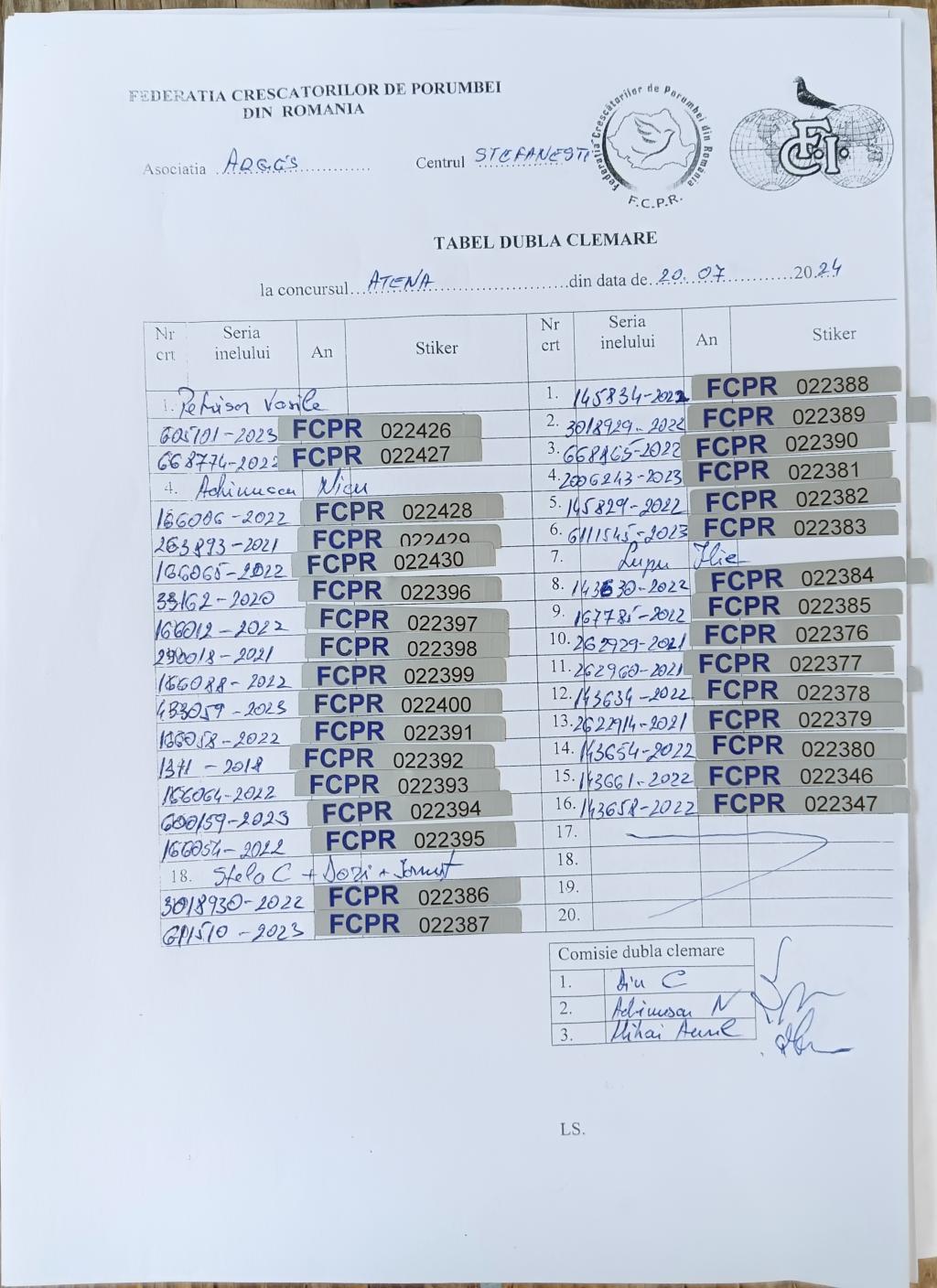 | 251 | Mosoianu D. + Ufa Alin | AG1560 | TOP | Stefanesti |