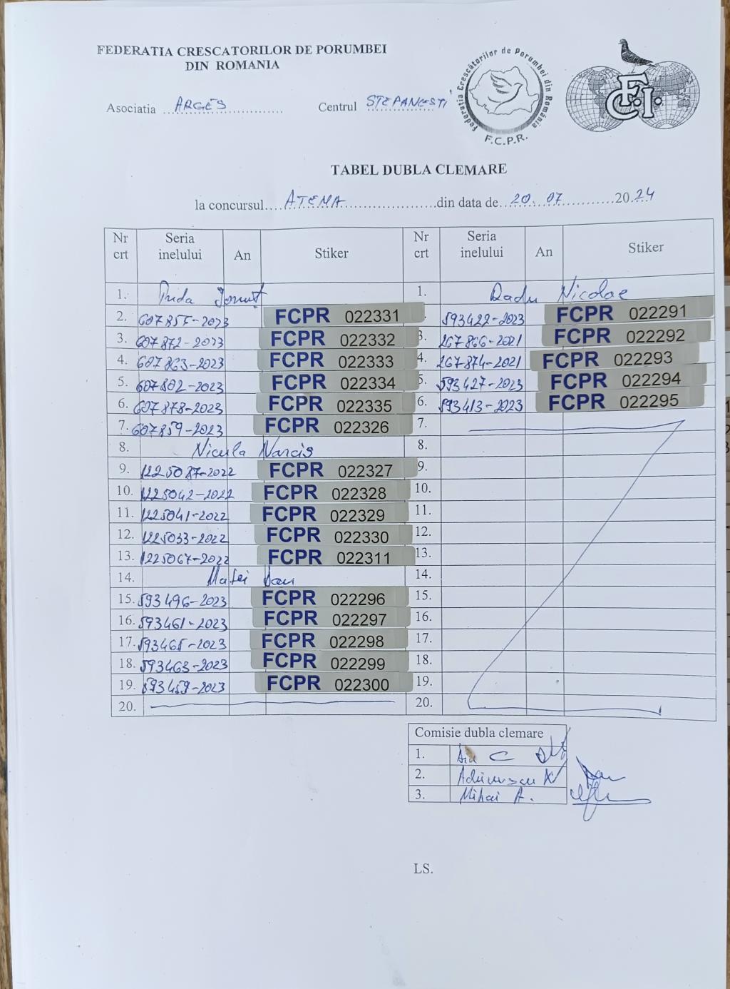 | 234 | Bogdan Catalin Constantin | AG1108 | TOP | Stefanesti |
