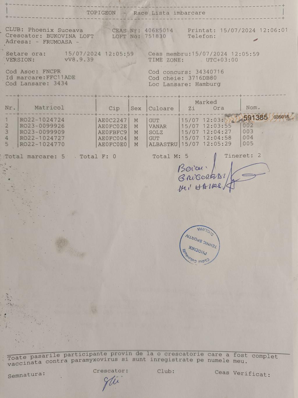 | 203 | Ciobotari Viorel | SV1766 | BEN | Radauti | [IMB P0] | |