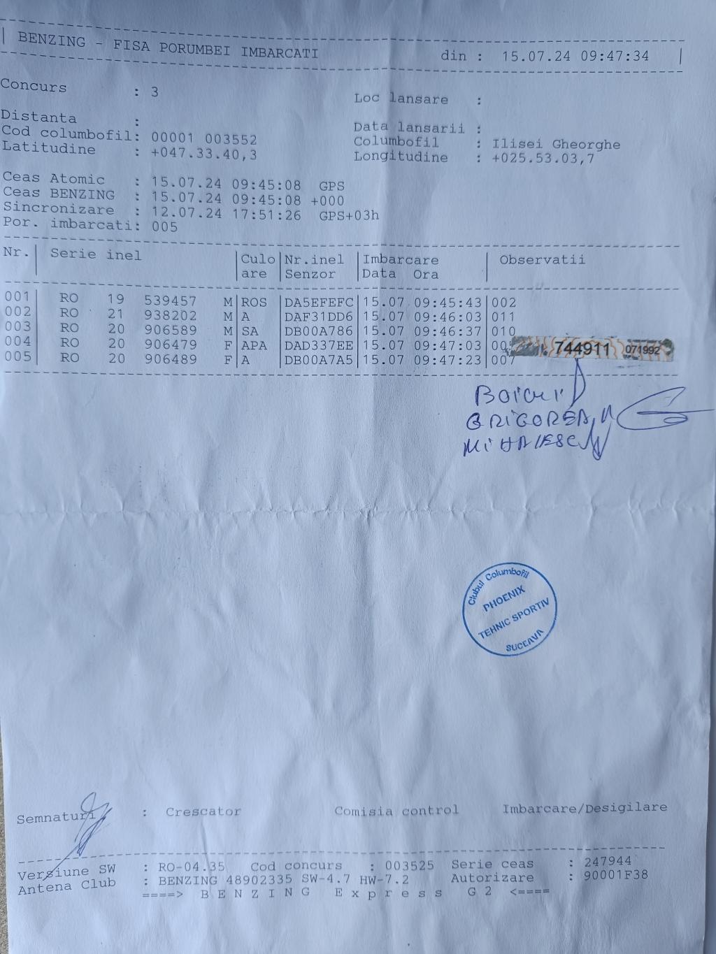 | 162 | Bughiu Cornel | SV725 | BEN | Radauti | [IMB P0] | |