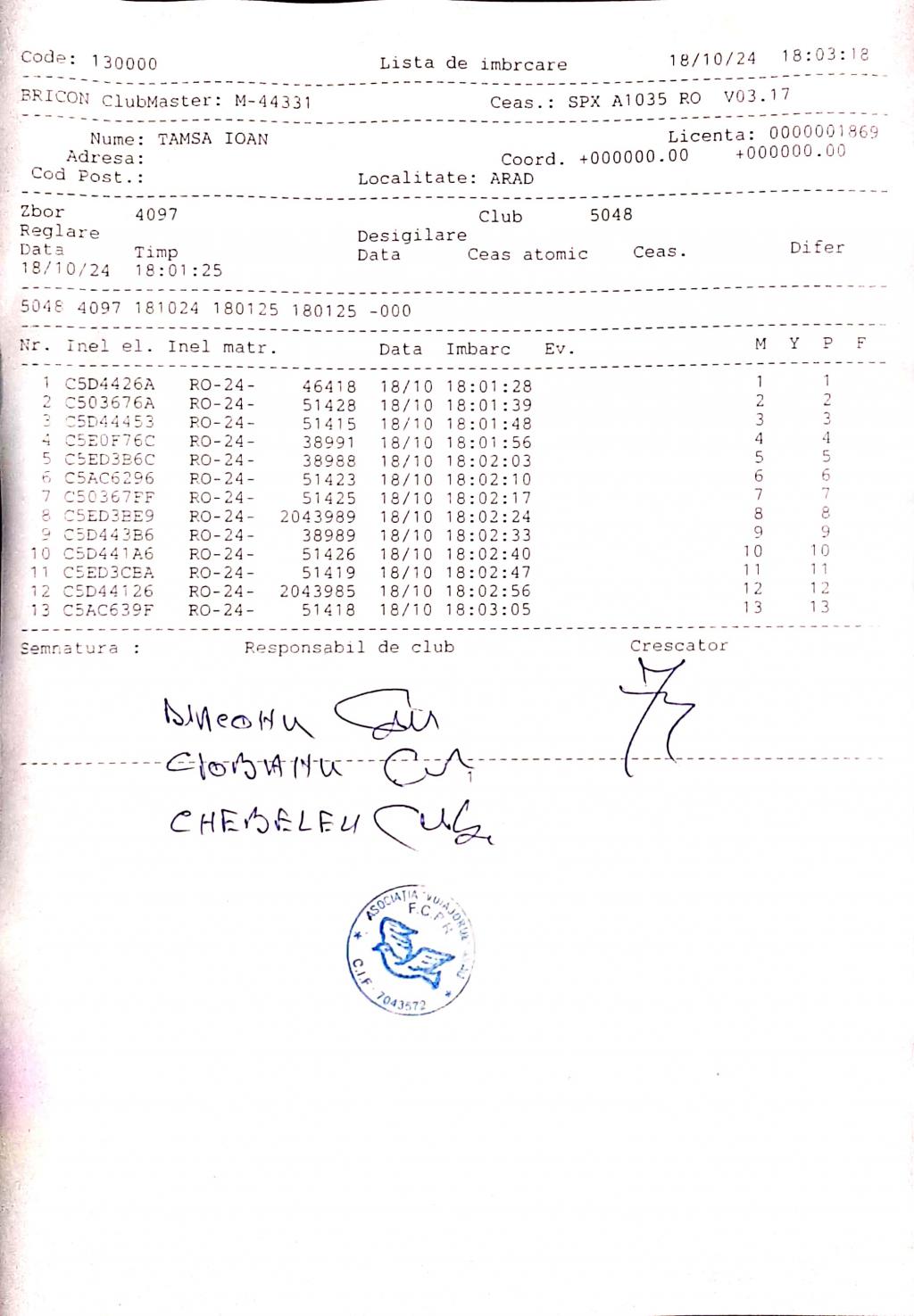 SIGILARE: [Sigilare AR 13 KJK Centrul Arad etapa de Kecskemet] |