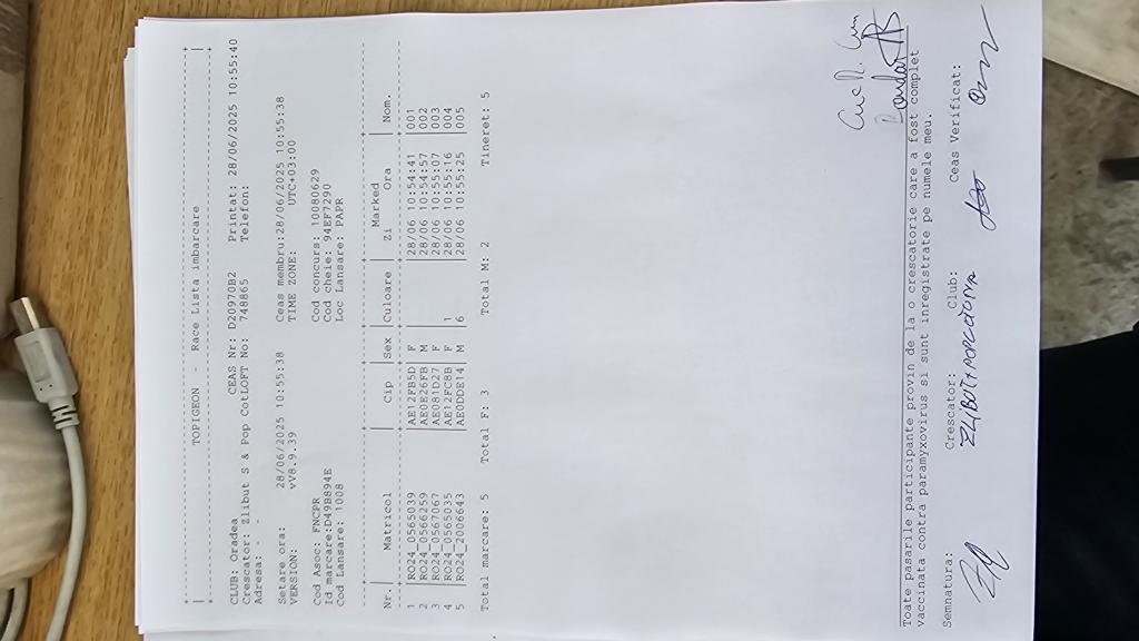 SIGILARE: [Desigilare BH27PRL la clubul Oradea sosita de la Clubul Sanmartin ] RECLEMARE: [Imvarcare Team Bondar - Sut] SIGILARE: [Sigilare BH27PRL la centrul Sanmartin ] RECLEMARE: [Imbarcare Fam. Lucaci] [Imbarcare Birta Alin] SIGILARE: [Sigilare BH27PRL la centrul Oradea cu destinatia Paprika ] |