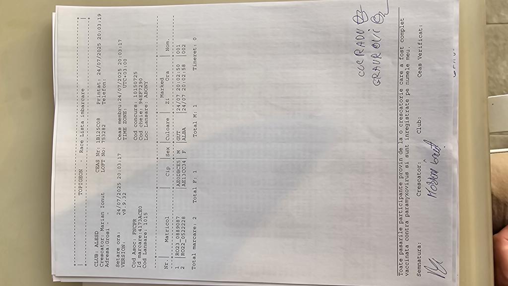 SIGILARE: [Sigilare BH27PRL la centrul Oradea cu destinatia Abony] [Desigilare BH27PRL la centrul Oradea de la centrul Sanmartin] RECLEMARE: [Reclemare control Tandem Ardelean + Gavrilut 2 porumbei] [Reclemare control, Cresc?tor Team Sut-Bondar. Porumbel 7761-23] [Reclemare control, Cresc?tor Iulius +Iulia Cotut] [Reclemare control, cresc?tor Bas Samuil] [Reclemare control centru Oradea, cresc?tor Milian+Sirbu, 4 porumbei] [Reclemare Fam. Miclos] [Reclemare Sanata - Zlibut - Fildan] [Reclemare Fam. Lucaci] SIGILARE: [Sigilare BH27PRL la centrul Sanmartin] |