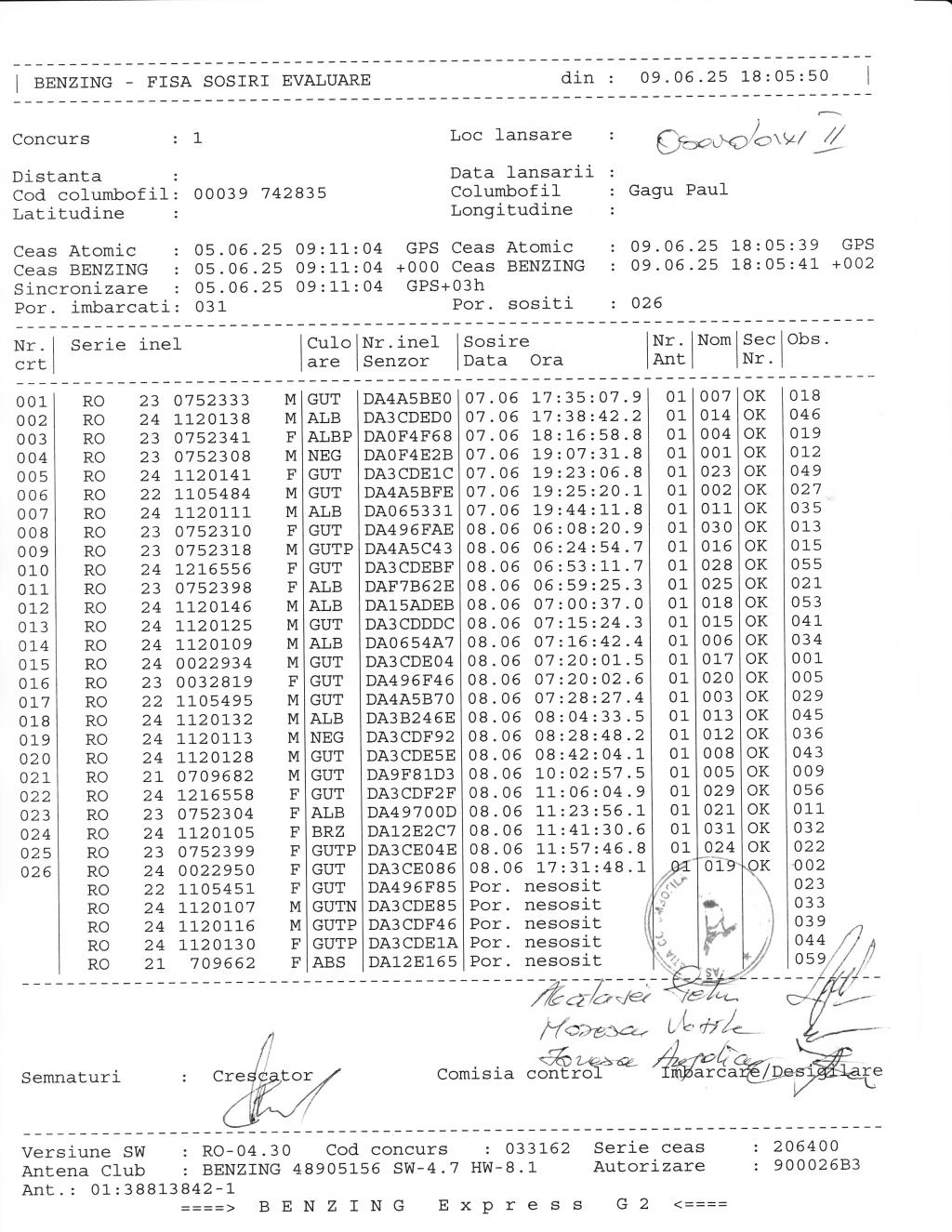 | 1 | Anton Florin | BZ2087 | BEN | Berca | [IMB P0] [IMB P1] | [DES P0] [DES P1] |