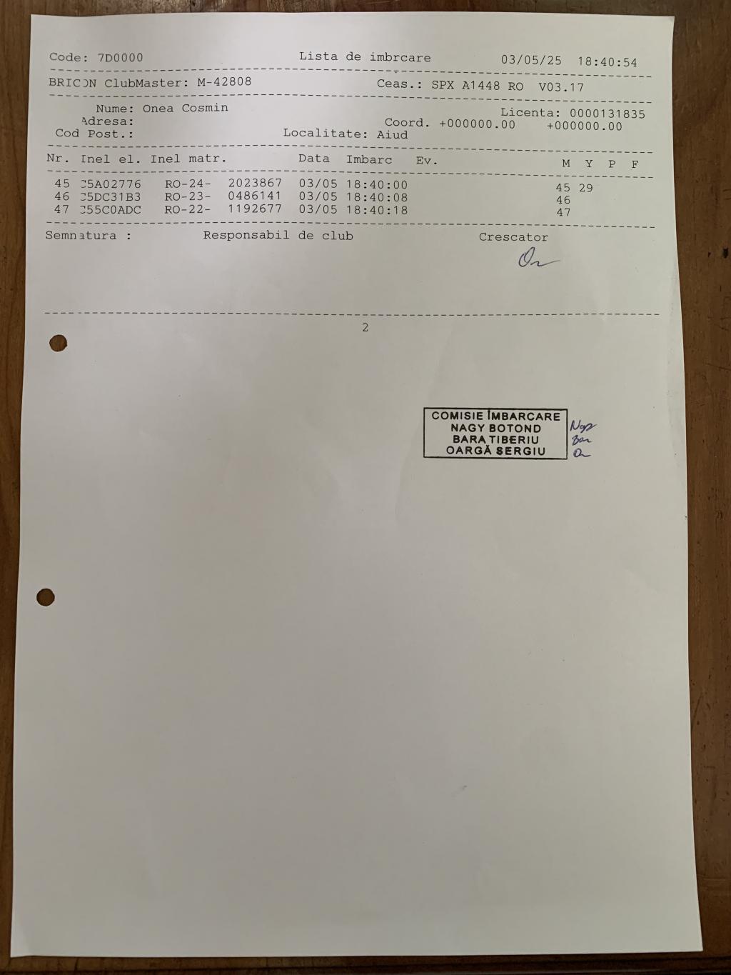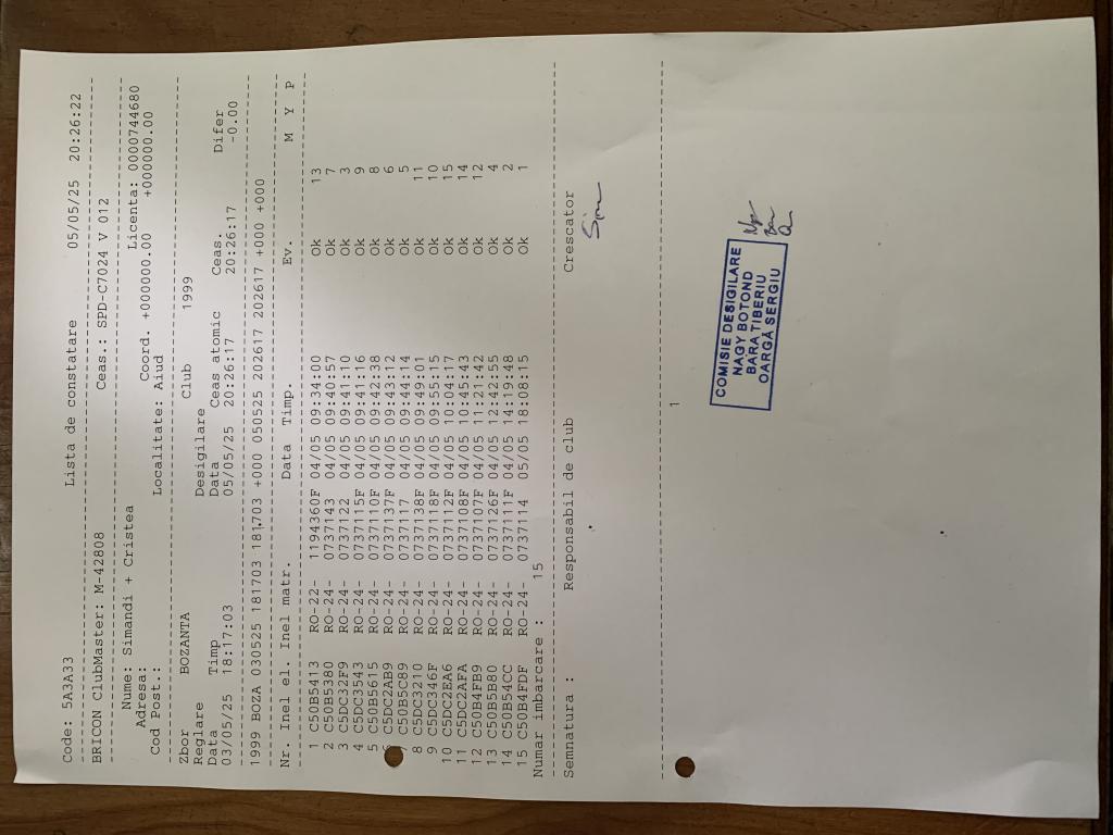 | 3 | Bugnar Dacian | AB1204 | BEN | Aiud | [IMB P0] | |