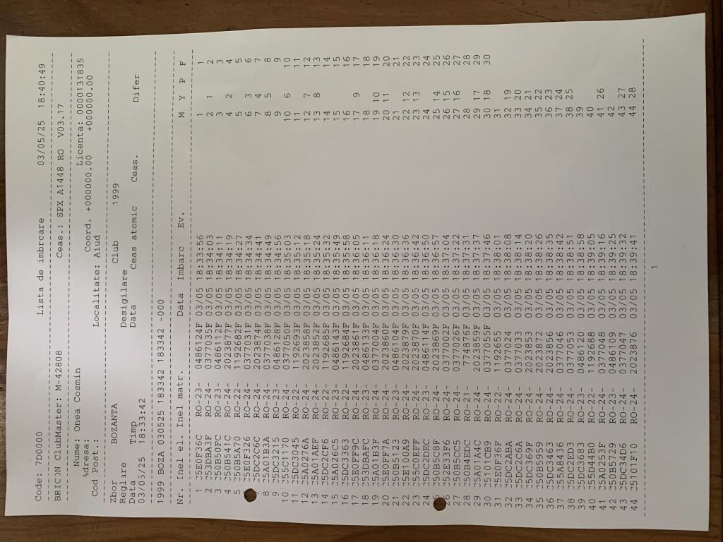 | 2 | Bradea Ioan | AB1079 | BRI | Aiud | [IMB P0] | [DES P0] |