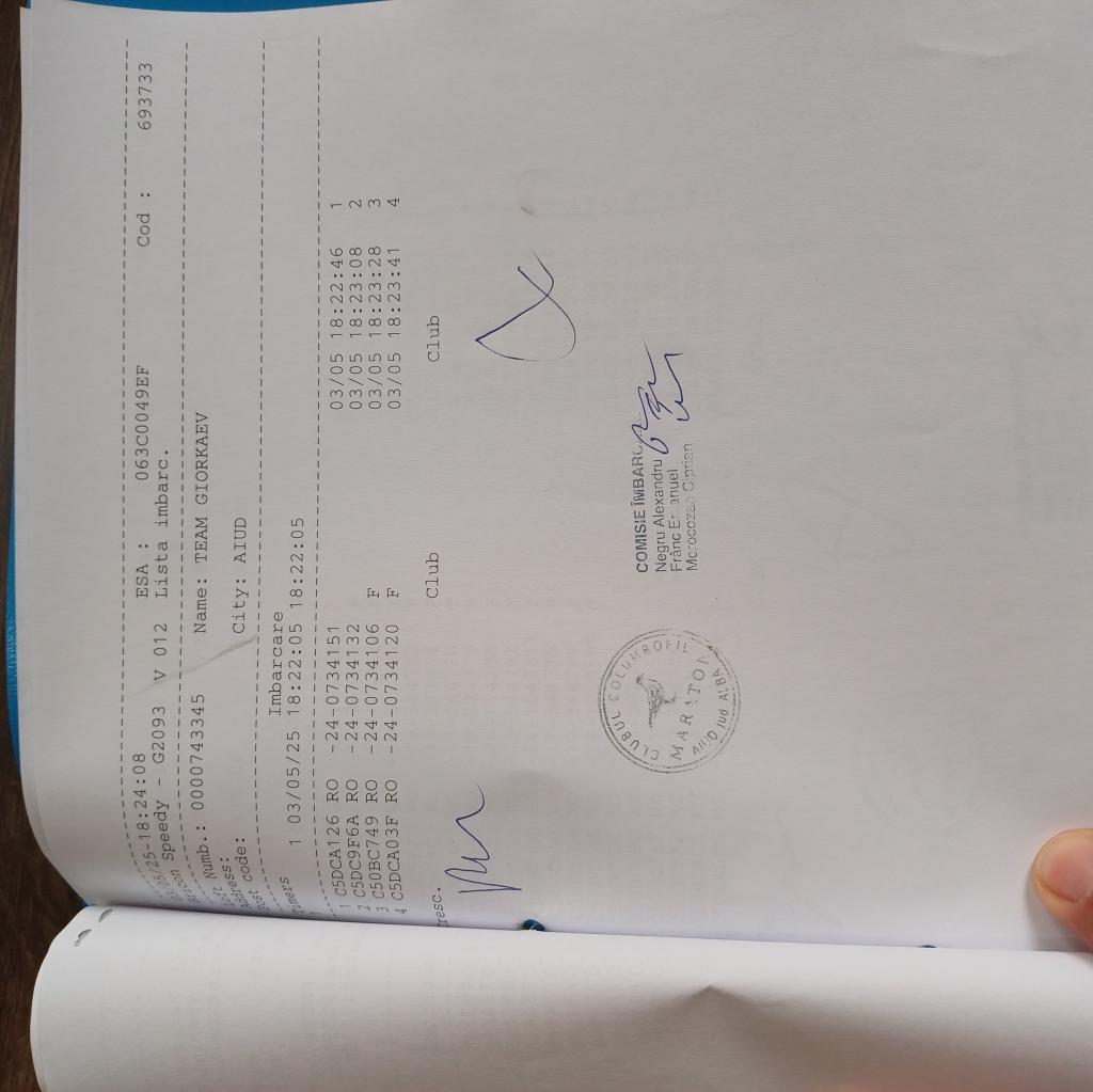 SIGILARE: [Sigilare centru Aiud ab15 bdy] [Sigilare masina cj 25 kck etapa Bozanta ] [Sosire AB15BDY la Maraton Aiud ] [Sigilare AB15BDY pentru plecare la Maraton Aiud ] [Sigilare centru Teius] [Sigilare masina Club Someseni Bozanta 2] |