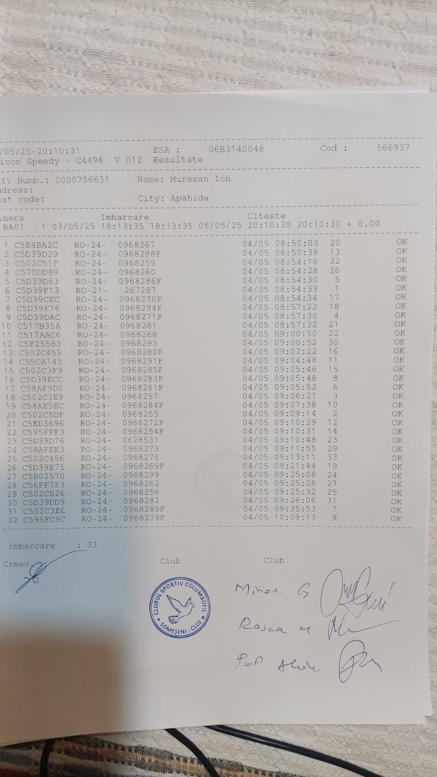| 35 | Man Marian - Vlad | CJ618 | TOP | Campia Turzii |