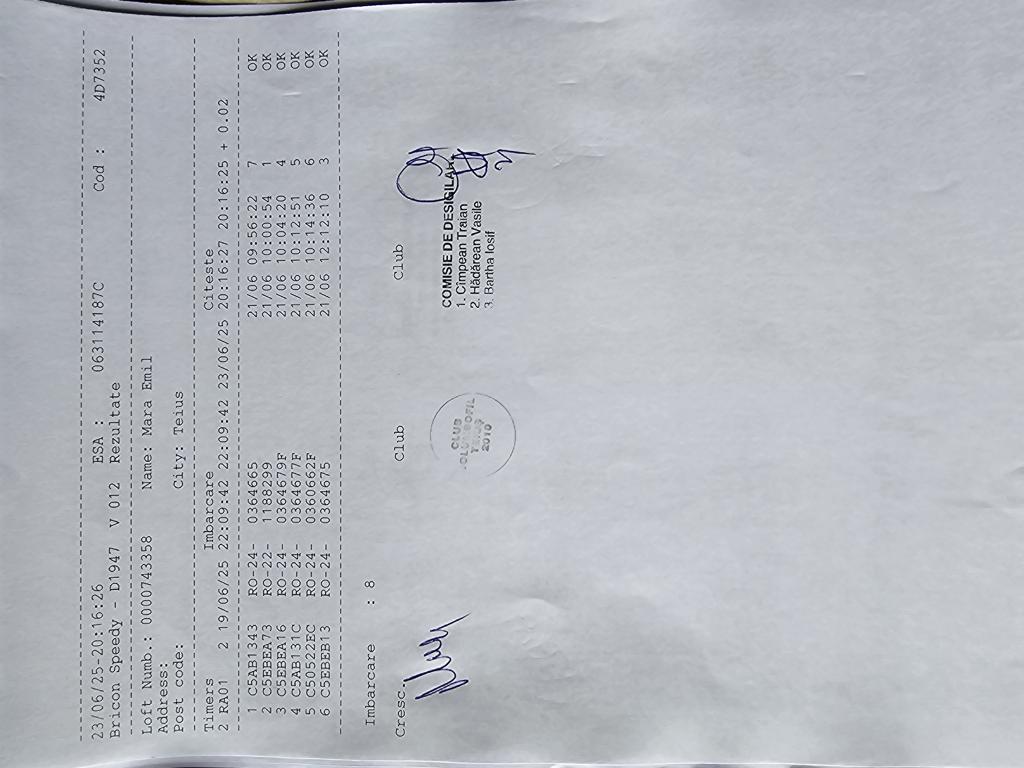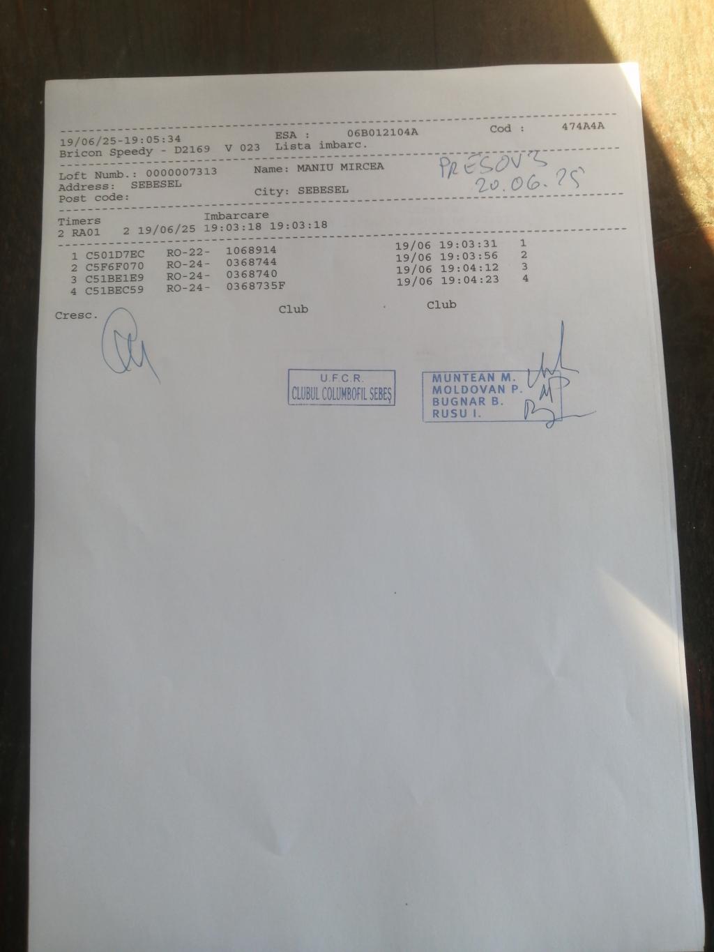 RECLEMARE: [imbarcare Monescu Calin + Gabriel] [imbarcare Ionita Daniel] [imbarcare Vasiu Sebastian] SIGILARE: [Sigilare masina Vintu de Jos etapa Presov 3] [sosire AB21BDY la centru sebes de la vint] [imbarcare Cindea Nicolae] [sigilare AB21BDY centru sebes] [SIGILARE MASINA CENTRU ALBA-IULIA] [Desigilare masina centru Alba-Iulia] [Imbarcare Hulea Dorin 1 porumbel] [Imbarcare Tirziu Marius 3 porumbei] [Sosire AB21BDY centru aiud] [Sigilare AB21BDY centru Aiud ] RECLEMARE: [Îmbarcare Suteu Lucian] [Îmbarcare Simandi +cristea] [Îmbarcare Onea cosmin] [Îmbarcare spaniol Viorel + Darius] [Îmbarcare Fufezan Gheorghe] [Îmbarcare Man Mihai + Tat?l ] SIGILARE: [Sosire centru Teius de la Alba Iulia ] [Sigilare centru Teius AB 21BDY catre Aiud] |