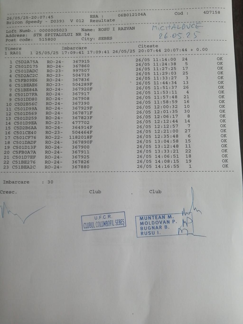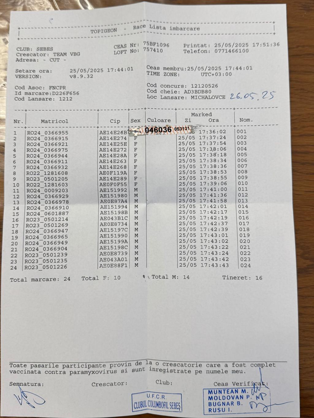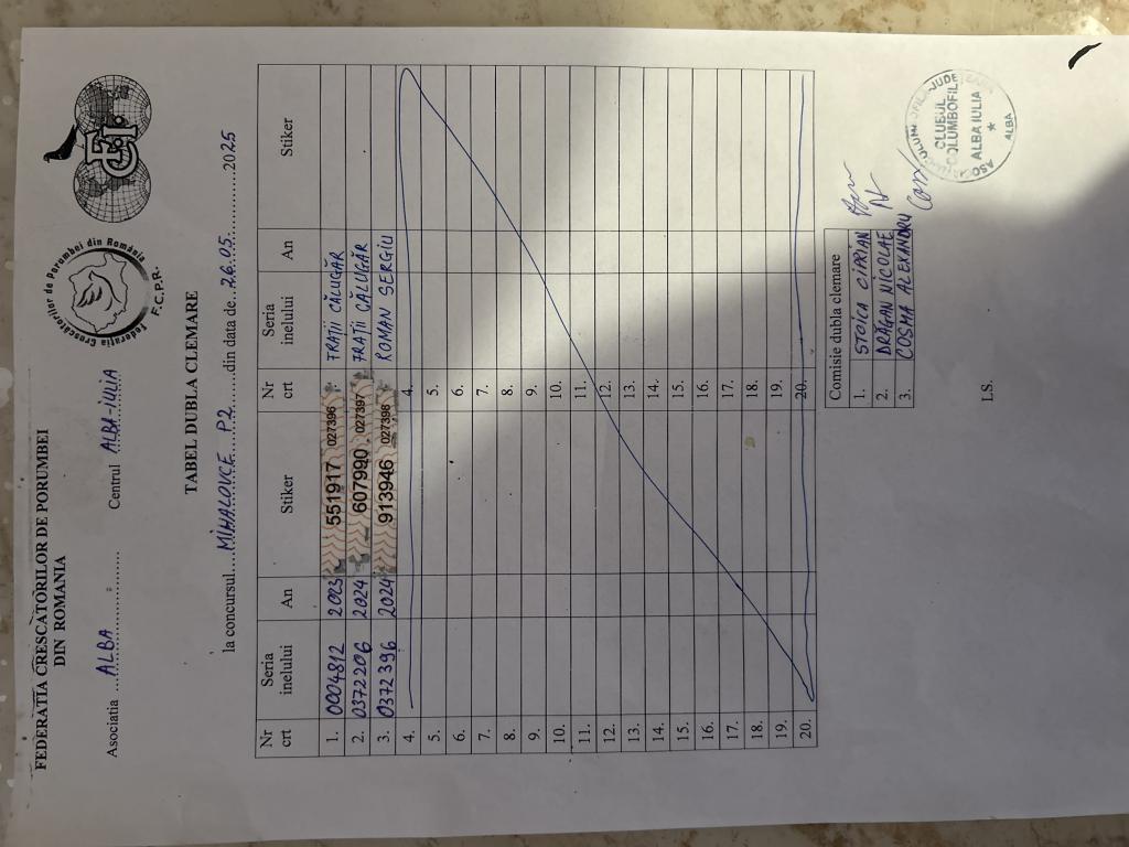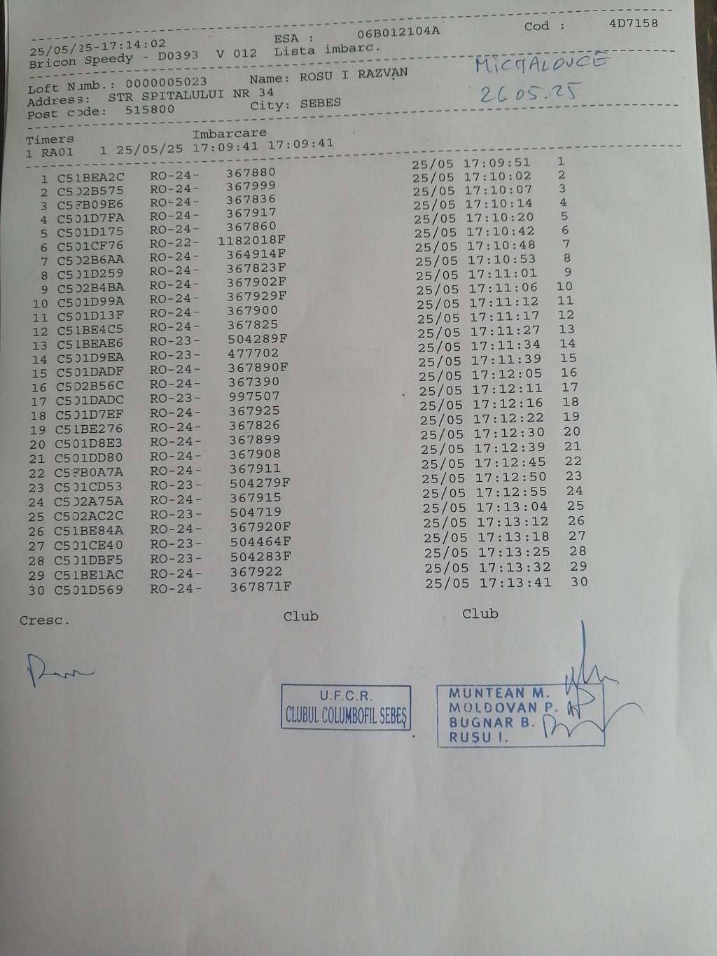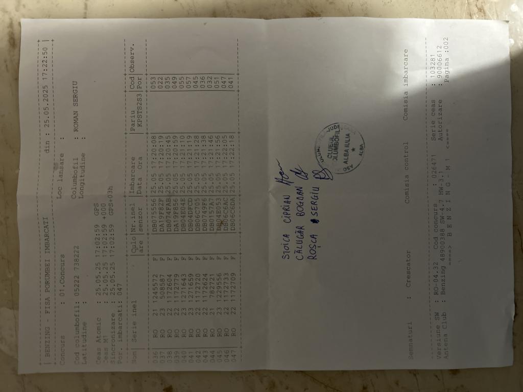 SIGILARE: [Sigilare masina Vintu de Jos etapa Mihalovce] [sosire AB03BDY de la centru vint la sebes] RECLEMARE: [imbarcare porumbel Team V.B.G RO2024 366955] [imbarcare porumbel ciobotariu valentin RO2024 368032] SIGILARE: [plecare masini AB03BDY si AB15BDY de la centrul sebes] RECLEMARE: [Sticker Roman Sergiu] [Sticker Fratii Calugar] [Imbarcare 4 porumbei Magda Ionut] SIGILARE: [Desigilare masina Centru Alba-Iulia] [Sigilare masina centru Alba-Iulia ] |
