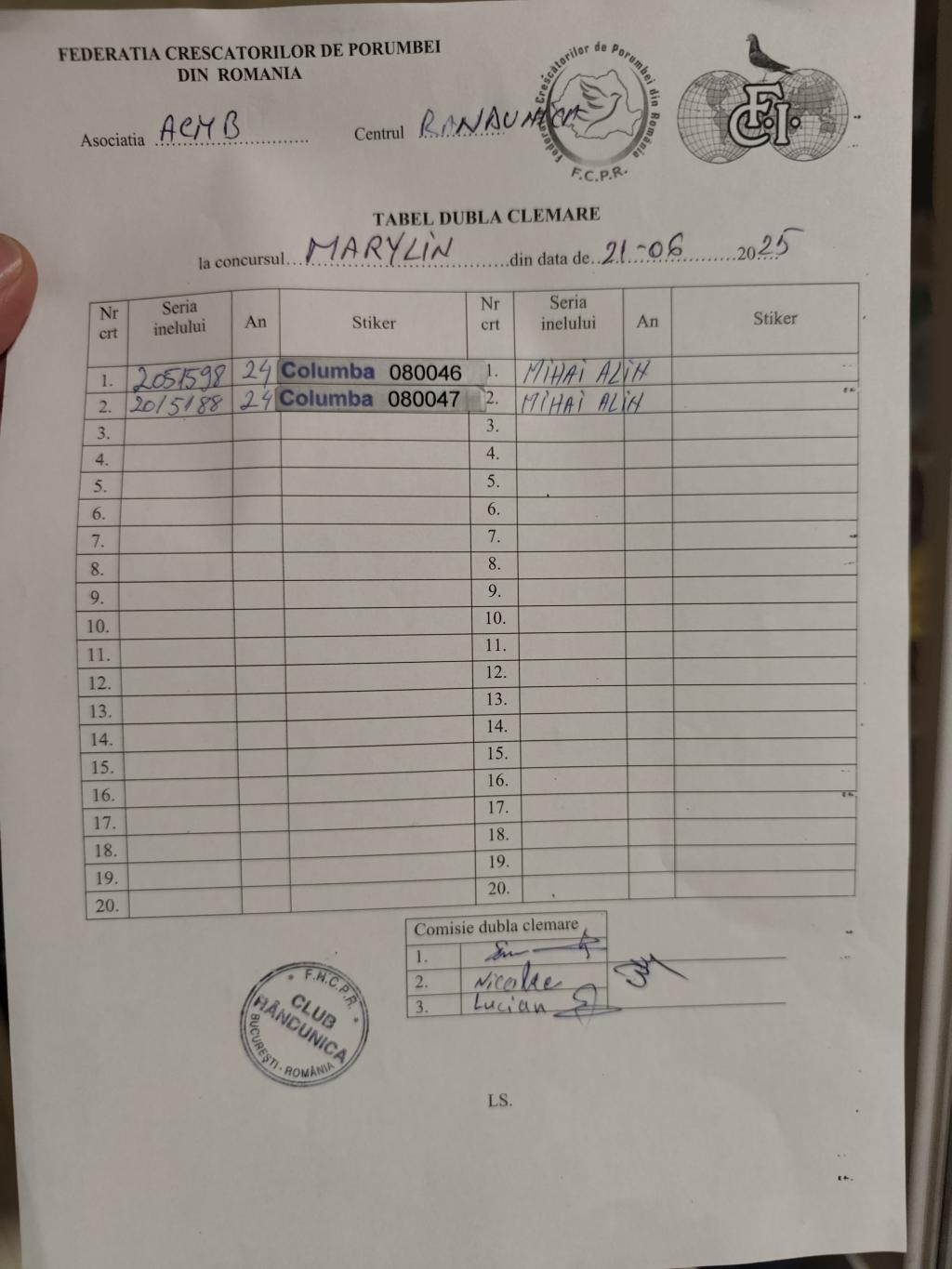 | 255 | Craciun Cristian | BB10119 | TOP | Randunica |